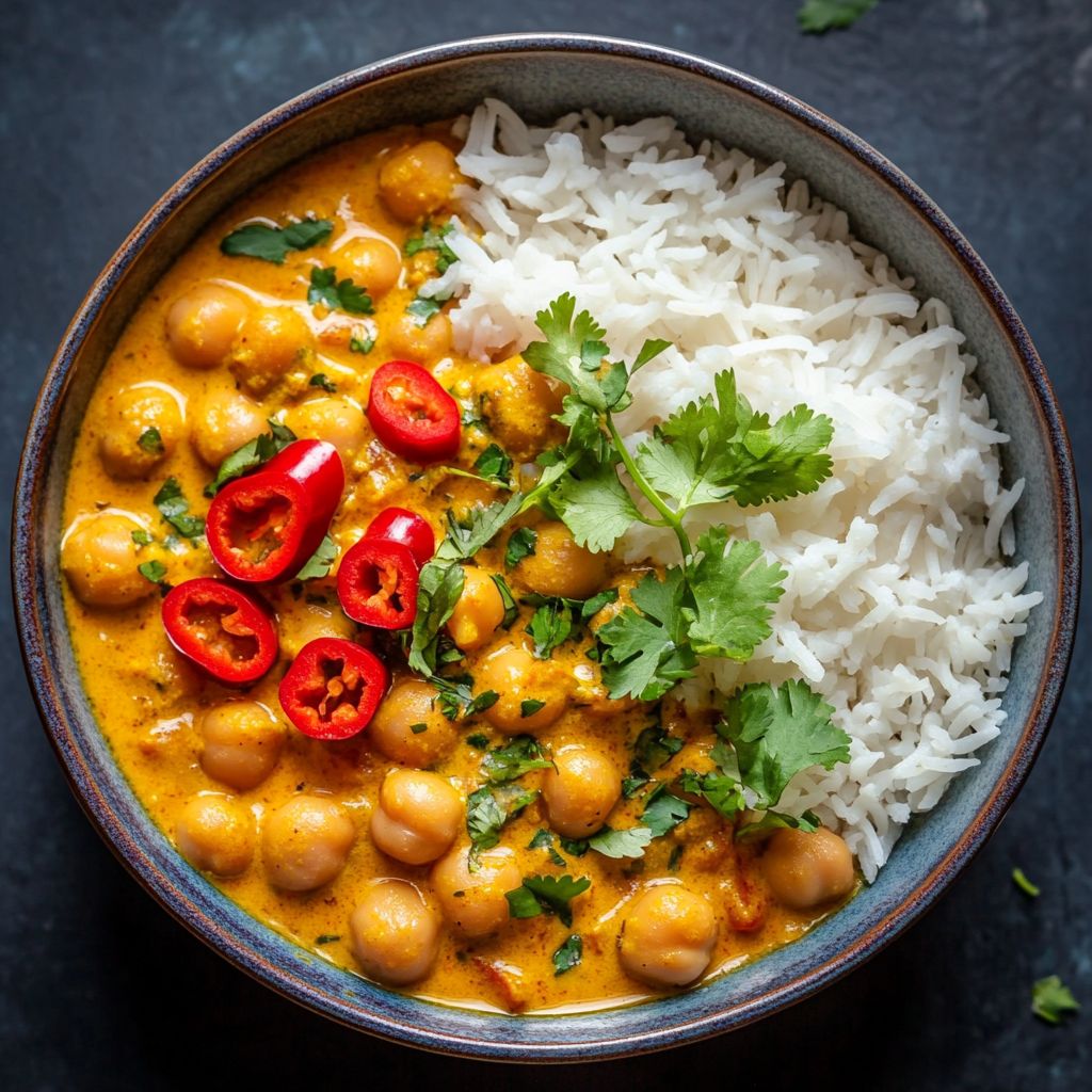 This easy chickpea curry is a delightful and nutritious dish that comes together in no time, making it perfect for busy weeknights. Packed with protein and fiber from the chickpeas, it offers a satisfying meal that can be enjoyed on its own or served with rice or naan. The diced tomatoes and coconut milk create a creamy base for the vibrant spices, while the fresh spinach adds a pop of color and extra nutrients. Feel free to adjust the spice levels according to your preference; you can add more red chili powder for a spicy kick or skip it altogether for a milder flavor. This curry is also great for meal prep and can be stored in the refrigerator for a few days or frozen for later. Garnish with fresh cilantro before serving for an added burst of freshness. Enjoy this comforting and flavorful dish any day of the week!