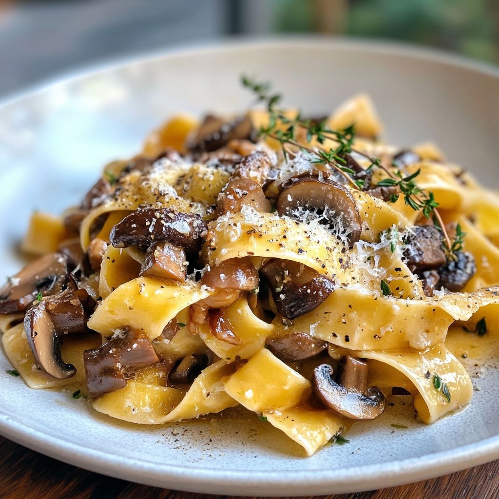 These Forest Mushroom Pappardelle noodles are a delightful and earthy dish perfect for pasta lovers. The combination of rich, mixed forest mushrooms like porcini, shiitake, and cremini offers a depth of flavor that complements the creamy sauce beautifully. The dish is made even more fragrant and flavorful with fresh thyme and garlic. Feel free to experiment with other types of mushrooms as well, as this dish is versatile and can adapt to your preferences. For a vegetarian option, simply use vegetable broth as listed. To elevate the meal, consider pairing it with a crisp green salad or a glass of white wine. This pappardelle dish is best enjoyed fresh but can also be reheated gently if you make a larger batch for easy leftovers.