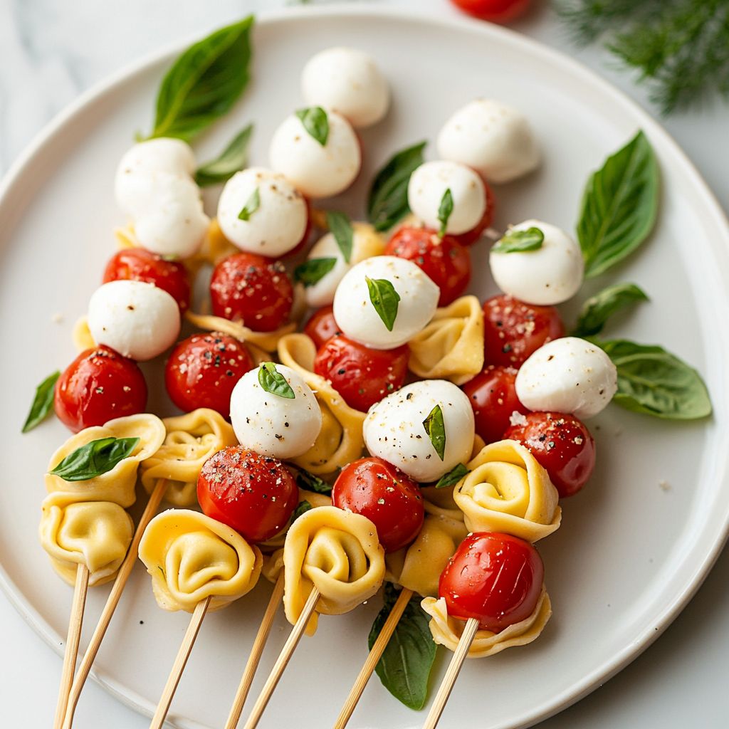 Consider serving these tortellini skewers alongside a variety of dipping sauces to elevate the flavor experience even further. A balsamic glaze or a rich pesto would pair beautifully, enhancing every bite and providing a little extra zing. You might also try creating a festive platter where guests can mix and match flavors, customizing their skewers according to their preference, thereby adding an interactive element to your holiday gathering.