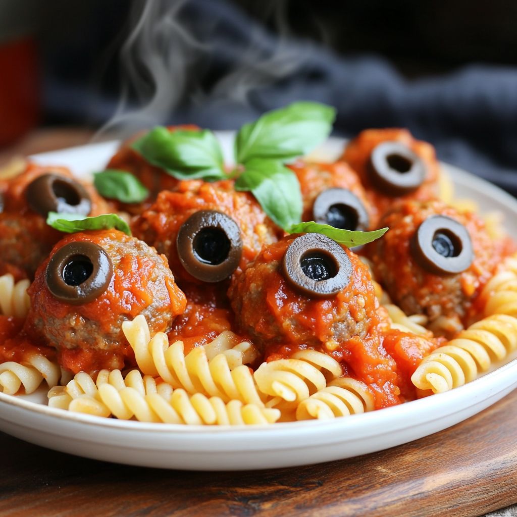 So whether you’re crafting this dish for a Halloween party, family dinner, or simply to connect with the magic of the season, Spooky Eyeball Meatball Pasta offers a patchwork of culinary traditions wrapped in festive fun. Let your imagination run wild as you concoct this creative dish, igniting the playful spirit of Halloween and transforming the dinner table into a scene of whimsy and joy. The mere act of savoring this delightful meal becomes an experience unto itself—one filled with laughter, nostalgia, and a little pinch of fright.