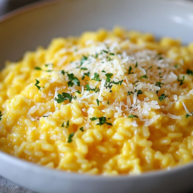 As your Risotto Milanese gently simmers, you may consider the many accompaniments that can elevate this dish even further. Traditionalists might stick to the classic version, garnishing with a scatter of freshly grated Parmigiano-Reggiano and perhaps a sprinkle of fresh herbs like parsley or chives for a pop of color. However, this is also the moment to let your creativity shine! Imagine topping the risotto with crispy pancetta that brings a savory crunch or perhaps a drizzle of truffle oil for an extravagant touch that speaks to more modern tastes. For a vegetarian spin, sautéed mushrooms or a medley of seasonal greens could provide a wonderful contrast, enriching each forkful with additional textures and flavors.