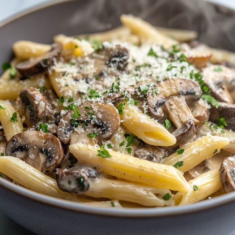 These Mushroom Garlic Penne are a delightful combination of earthy mushrooms and aromatic garlic, creating a satisfying and flavorful dish. The recipe is simple and quick, making it perfect for a weeknight dinner. You can modify this dish by adding protein such as grilled chicken or sautéed shrimp for an extra boost. For a vegetarian option, consider adding spinach or kale for added nutrition and color. This dish is best enjoyed fresh, but you can store leftovers in an airtight container in the refrigerator for up to three days. When reheating, add a splash of olive oil or water to ensure the pasta doesn’t dry out. Always adjust the seasoning with salt and pepper according to your taste, and feel free to sprinkle additional Parmesan cheese on top for an extra cheesy finish.