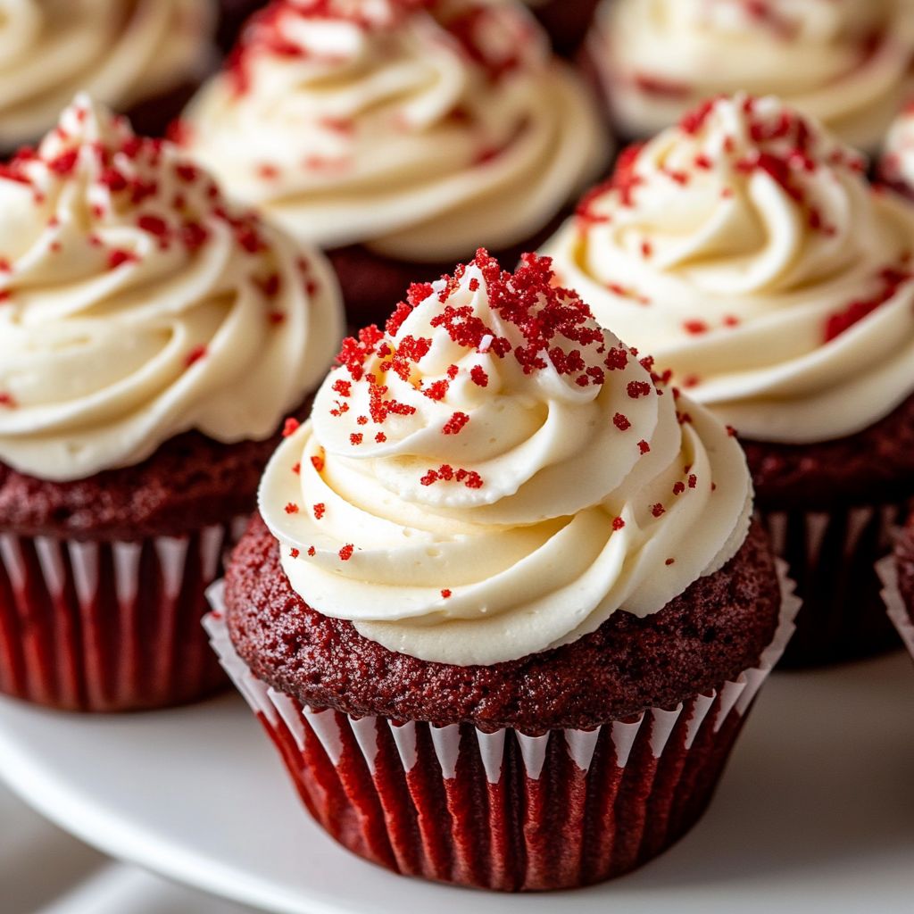 Red Velvet Cupcakes are a popular dessert known for their rich red color, soft texture, and subtle cocoa flavor, often topped with a creamy frosting, typically cream cheese or buttercream.