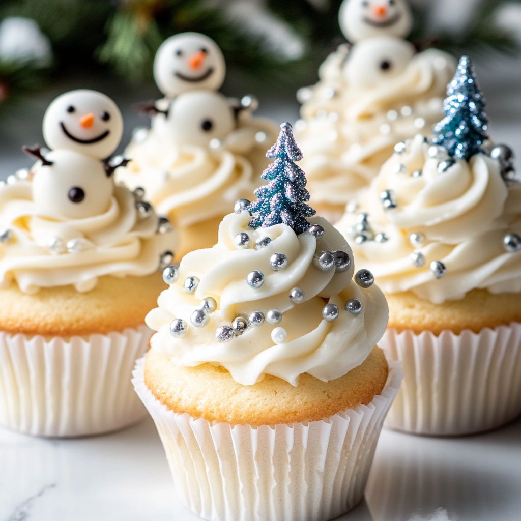 Imagine biting into a light, fluffy cupcake as soft as freshly fallen snow, revealing a moist and flavorful cake layered with the perfect hint of seasonal spices. The frosting—rich, creamy, and elegantly swirled—brings a touch of indulgence, resembling the soft drifts of snow covering the ground in a winter landscape. To top it all off, these charming cupcakes are adorned with magical decorations that evoke thoughts of winter wonderlands, making them both a treat for the taste buds and a feast for the eyes.