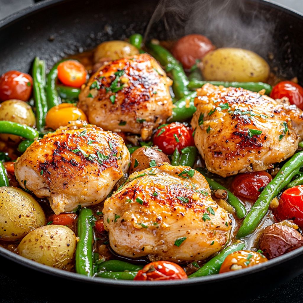 These One-Pan Garlic Butter Chicken & Veggies are a simple yet delicious weeknight meal that packs a punch of flavor. The boneless, skinless chicken thighs stay juicy and tender, absorbing all the wonderful notes of garlic and butter. For added depth, don’t skip the fresh garlic, which should be introduced towards the end of cooking to prevent burning while still infusing its aromatic essence into the dish.