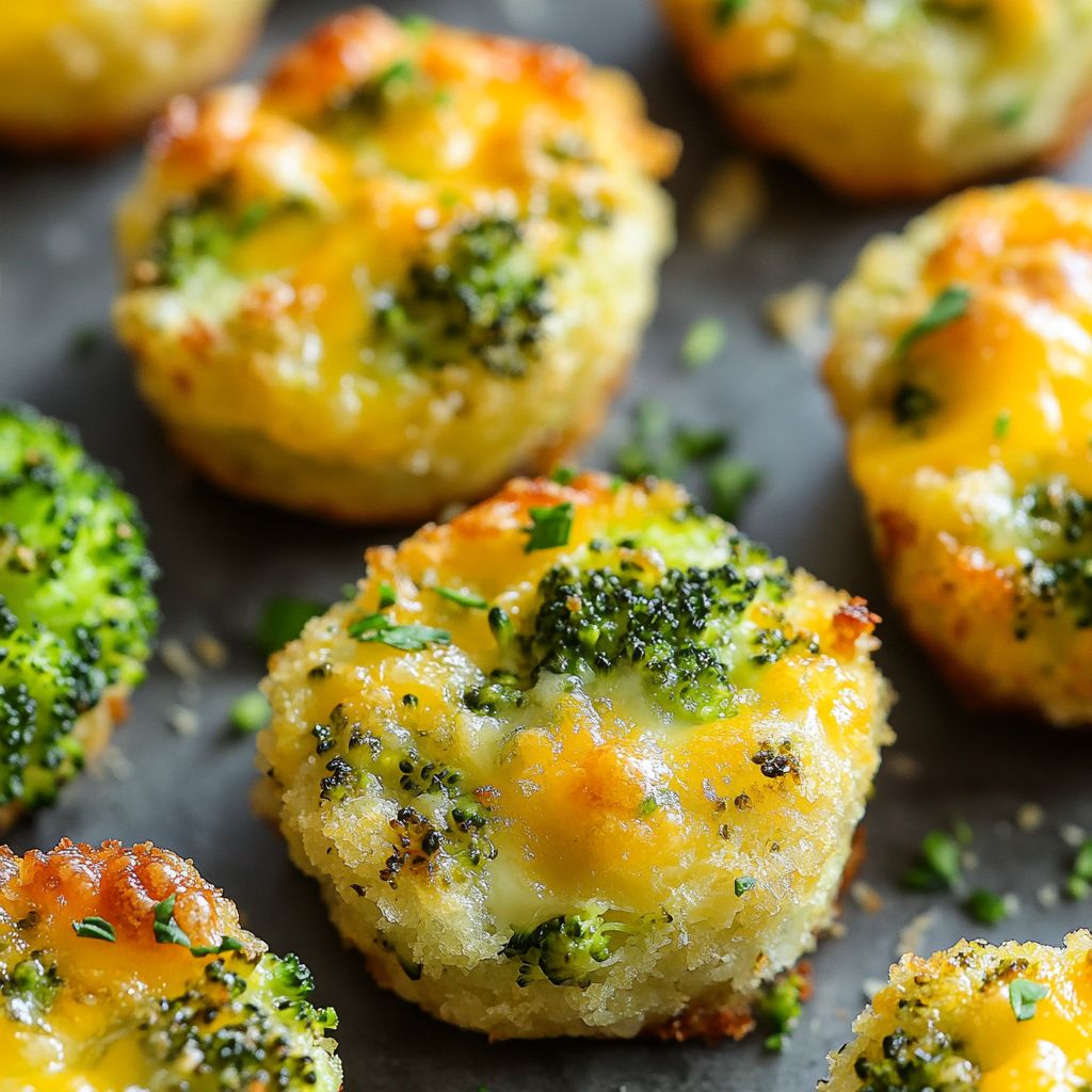 Cheesy Broccoli Bites are incredibly versatile, making them ideal for numerous occasions. Consider serving them as an appetizer at a holiday gathering, where they are sure to spark conversation and please guests of all ages. They’re equally suitable for a casual weeknight dinner, offering a delicious side dish that accompanies grilled meats or roasted poultry beautifully. For a fun twist, pair them with a tangy marinara sauce for dipping, or serve alongside a creamy ranch dressing for an additional layer of flavor. Wash these bites down with a crisp, cold white wine, such as a Sauvignon Blanc, to bring out their cheesy nuances. And don’t forget the kids; a glass of fresh-pressed apple juice can provide a delightful contrast, accentuating the savory notes with its natural sweetness.