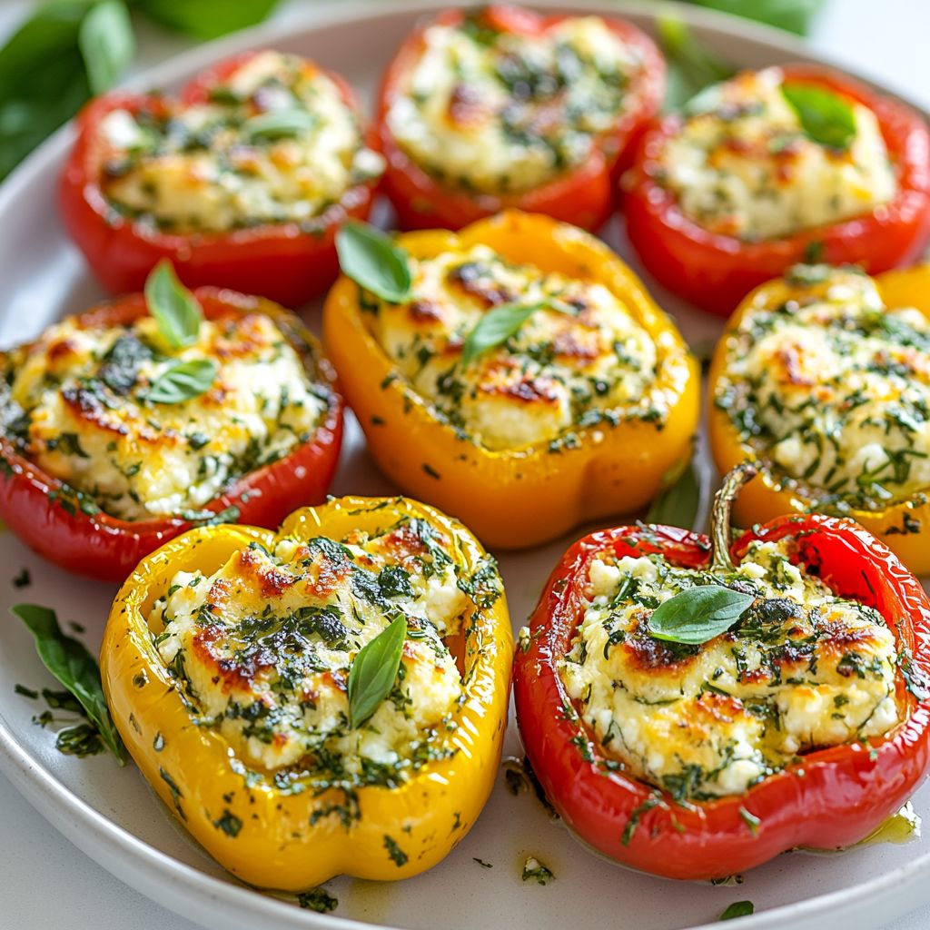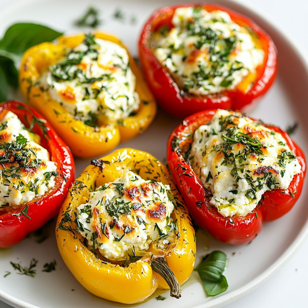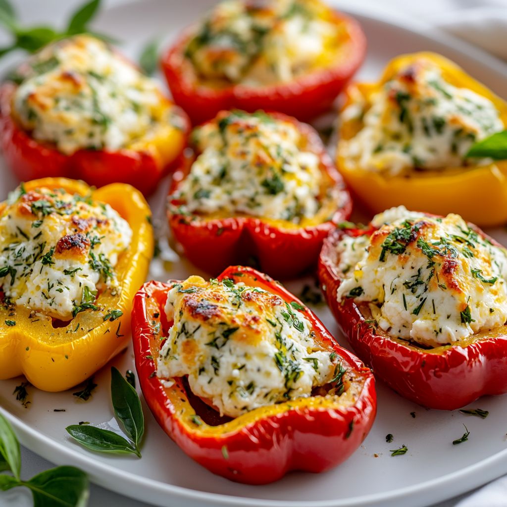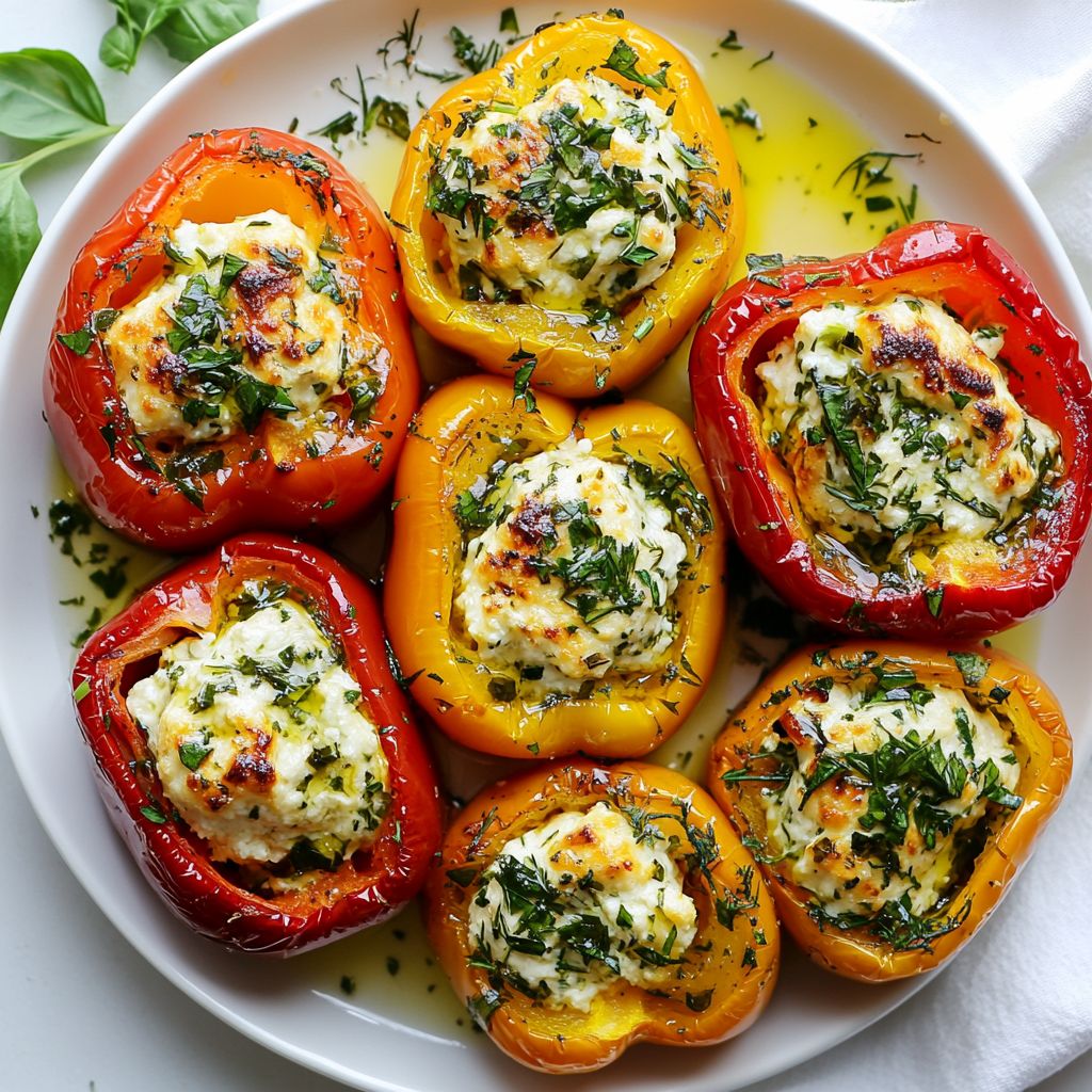 → Allowing them to rest briefly makes them easier to handle and gives the flavors a moment to meld as they cool slightly. - Serve the herbed goat cheese stuffed peppers warm, optionally garnishing with additional chopped fresh herbs for visual appeal and a burst of freshness.