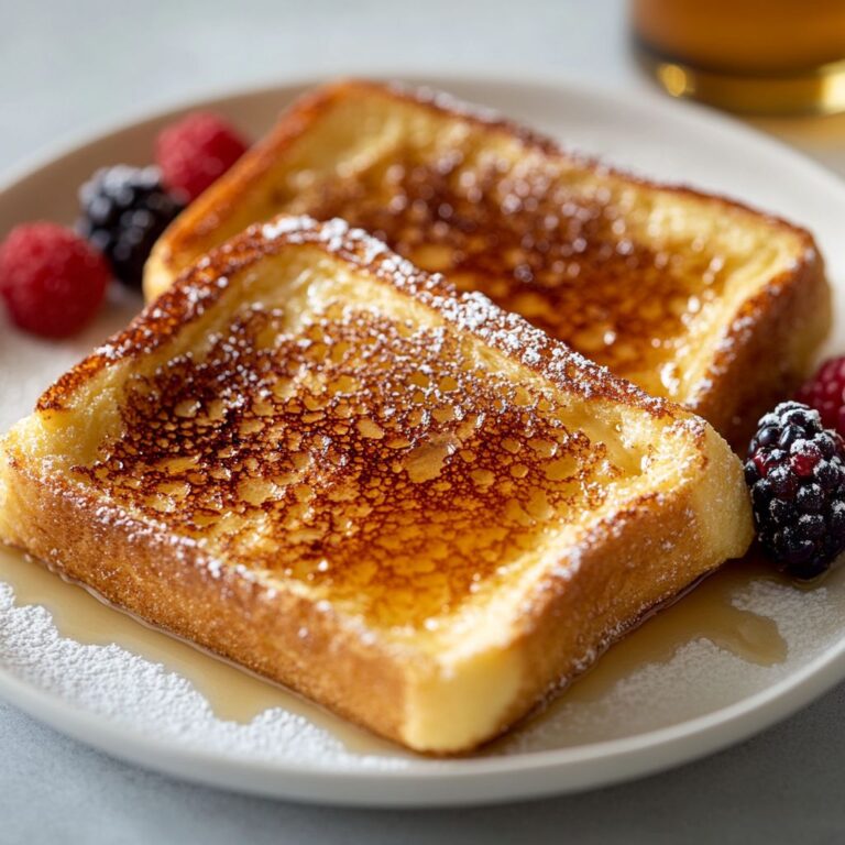 Crème Brûlée French Toast is a custard-soaked French toast that captures the creamy interior and caramelized sugar crust of crème brûlée. Thick slices of bread are saturated in a rich egg–cream mixture, pan-fried until golden, and finished with a brûléed sugar topping for a crisp, glassy crust.