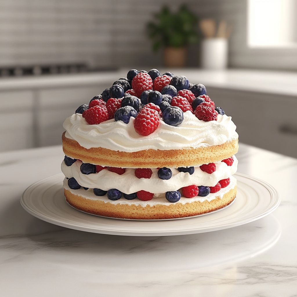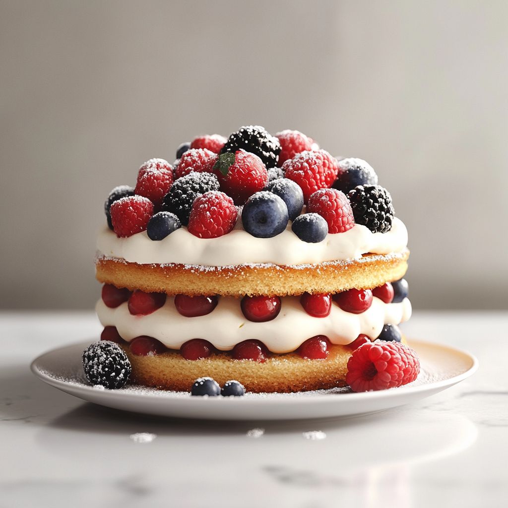→ Chilling firms the structure, reduces squashing of layers, and enhances the clean, neat look of each slice. - Decorate with fresh berries arranged in concentric rings or a scattered pattern on top, tuck a few fresh mint leaves around the berries for color and aroma, and lightly dust with confectioners’ sugar if desired just before serving.