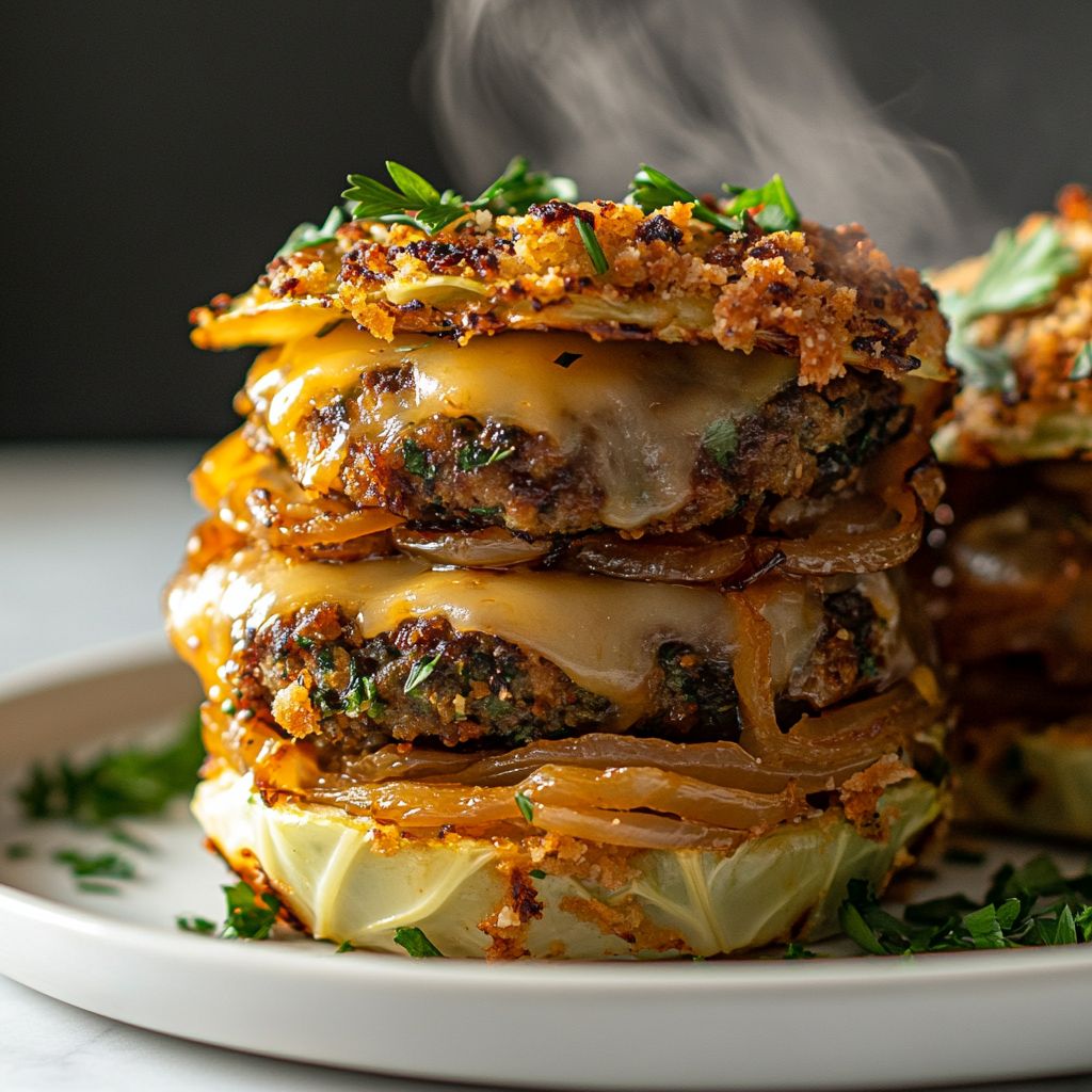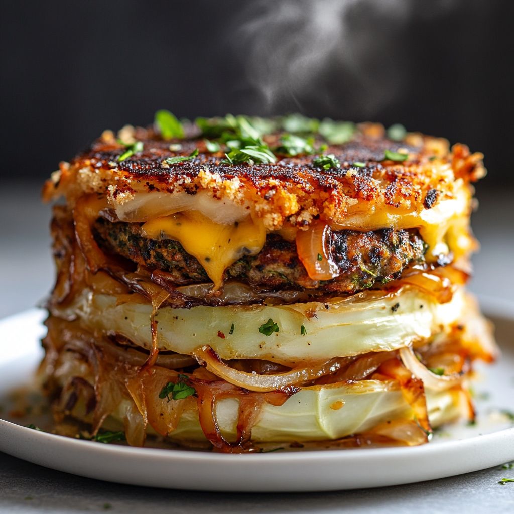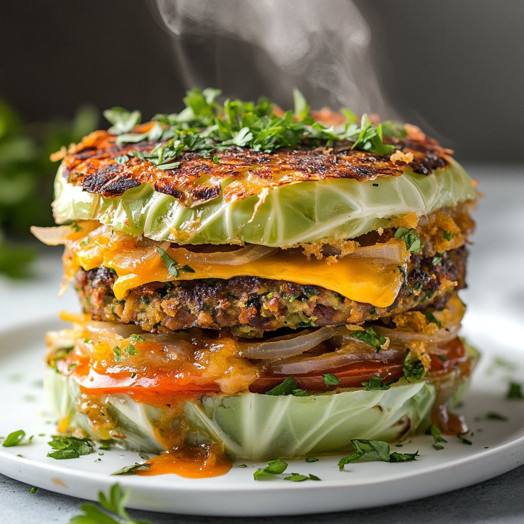 → A steady bake ensures the cabbage base becomes tender yet crisp at the edges, while the toppings caramelize and form a crisp cap. - Let the Crispy Cabbage Burger Bake rest for 10 minutes before slicing to allow the layers to set and hold together when portioning.
