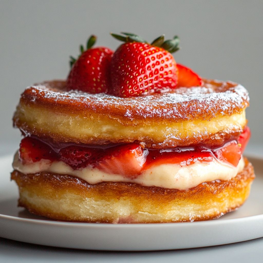 Desserts that marry fruit and dairy have long cherished a place in kitchens across the world, and fried treats—especially in fairgrounds, street carts, and family gatherings—have a magical way of turning simple ingredients into memorable experiences. The idea of foiling a creamy cheesecake inside a crisp shell isn’t exactly traditional, yet it taps into a long lineage of clever fried confections that celebrate contrasts: hot vs. cold, crispy vs. smooth, plain vs. bright. The strawberry, with its sweet-tart bite, has always been a signal of sunlit days and summer markets, making it the perfect counterpart to the velvet richness of cream cheese. The concept of “sandwiching” fillings between two surfaces—whether bread, pastry, or crisp batter—has roots in countless cuisines: think melty grilled cheeses, flaky pastries with fruit centers, or puff pastry turnovers. In this particular dish, the sandwich evolves into a portable dessert that’s easy to share and even easier to adore. It’s the kind of treat that seems to appear in cozy kitchens during late-night chat sessions or at festive gatherings where a tray of warm sweets invites everyone to take a moment, pause, and smile. The origin story here is less about a single inventor and more about a fusion of comforting techniques: use of a rich cheesecake filling, a light, airy batter that fries to a delicate crunch, and a fruit-driven brightness that makes each bite feel fresh rather than heavy. It’s a celebration of contrasts, a tribute to nostalgic flavors, and a gentle nod to food memories that linger long after the plate is cleared.