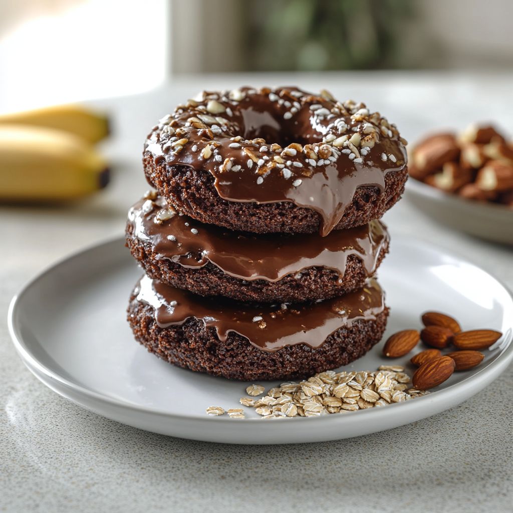 A baked, wholesome donut designed for a balanced breakfast or morning snack. They’re choco-rich, naturally sweetened with fruit and a touch of maple, and made with then-healthy pantry staples like oats and yogurt for a soft, cake-like texture.