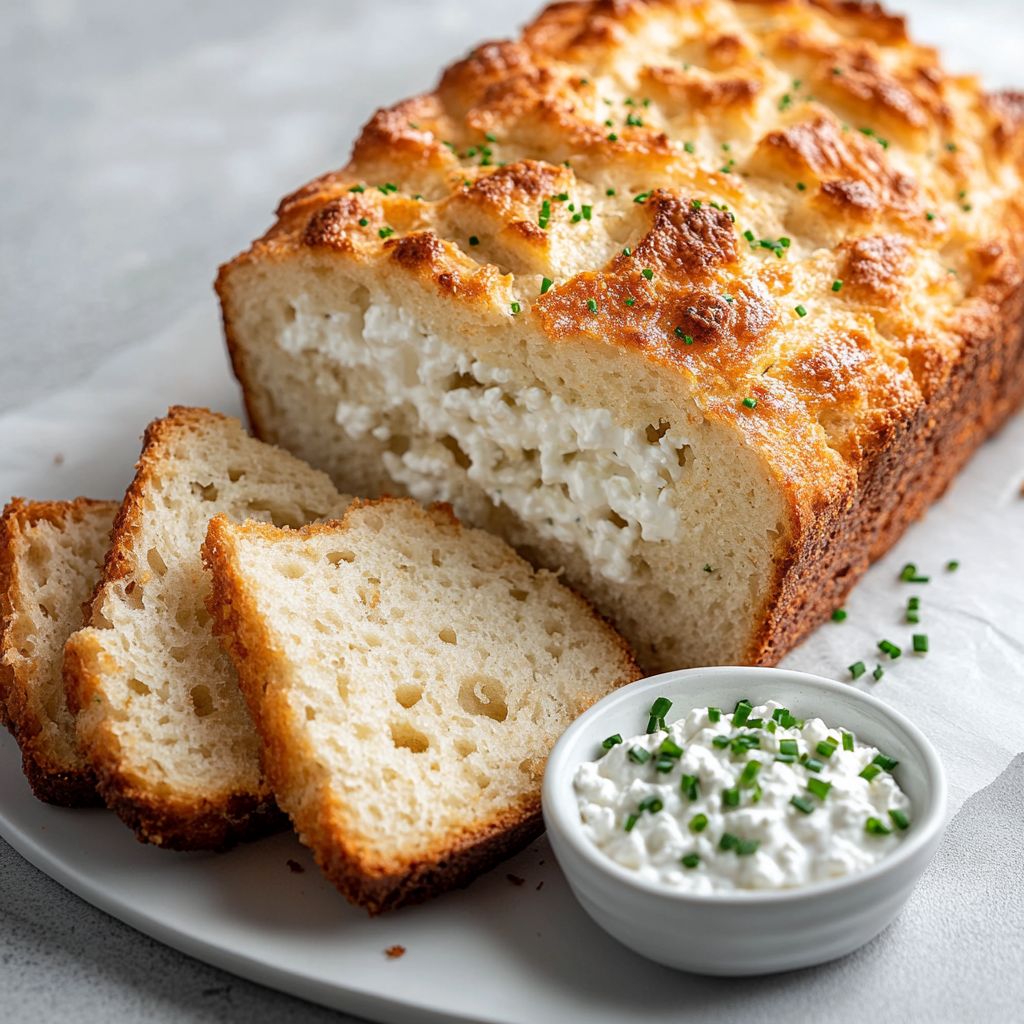 A loaf-style bread baked to be higher in protein by using cottage cheese as a primary binder, along with eggs and protein-rich flours or blends. It yields a moist, dense crumb and pairs well with savory toppings or spreads.