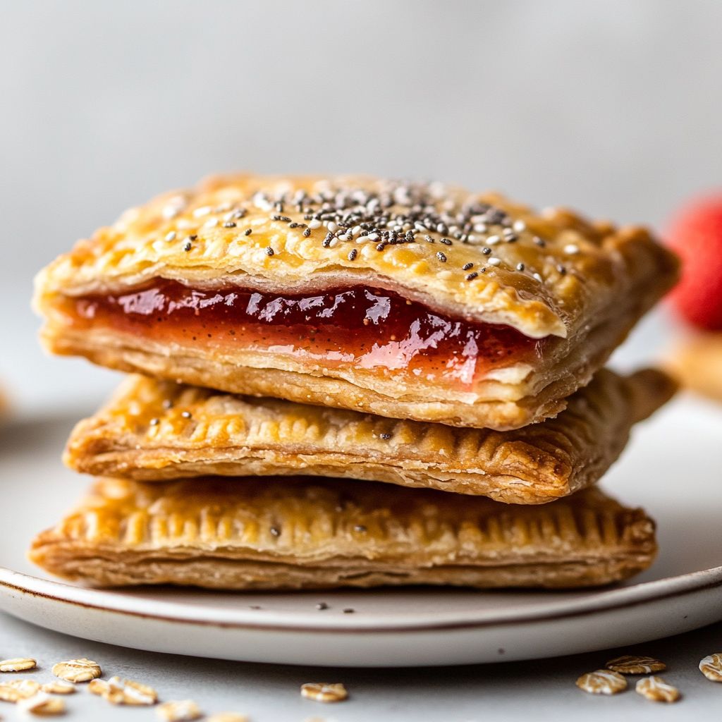 A handheld, high-protein pastry with a soft crust and a strawberry filling. Made to be portable and convenient for breakfast or a snack, with extra protein from protein powder or Greek yogurt.
