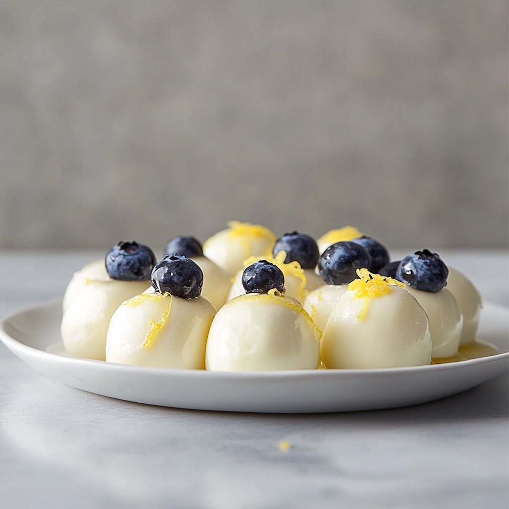 These gluten-free bocconcini lemon and blueberry bites are protein-packed and naturally sweetened by the delicate combination of mozzarella and yogurt, with bright lemon zest and juicy blueberries for a refreshing bite. The texture should be tender with a subtle creaminess from the cheese and yogurt, balanced by almond flour for structure. They make an elegant snack or appetizer that holds well in the fridge or freezer.