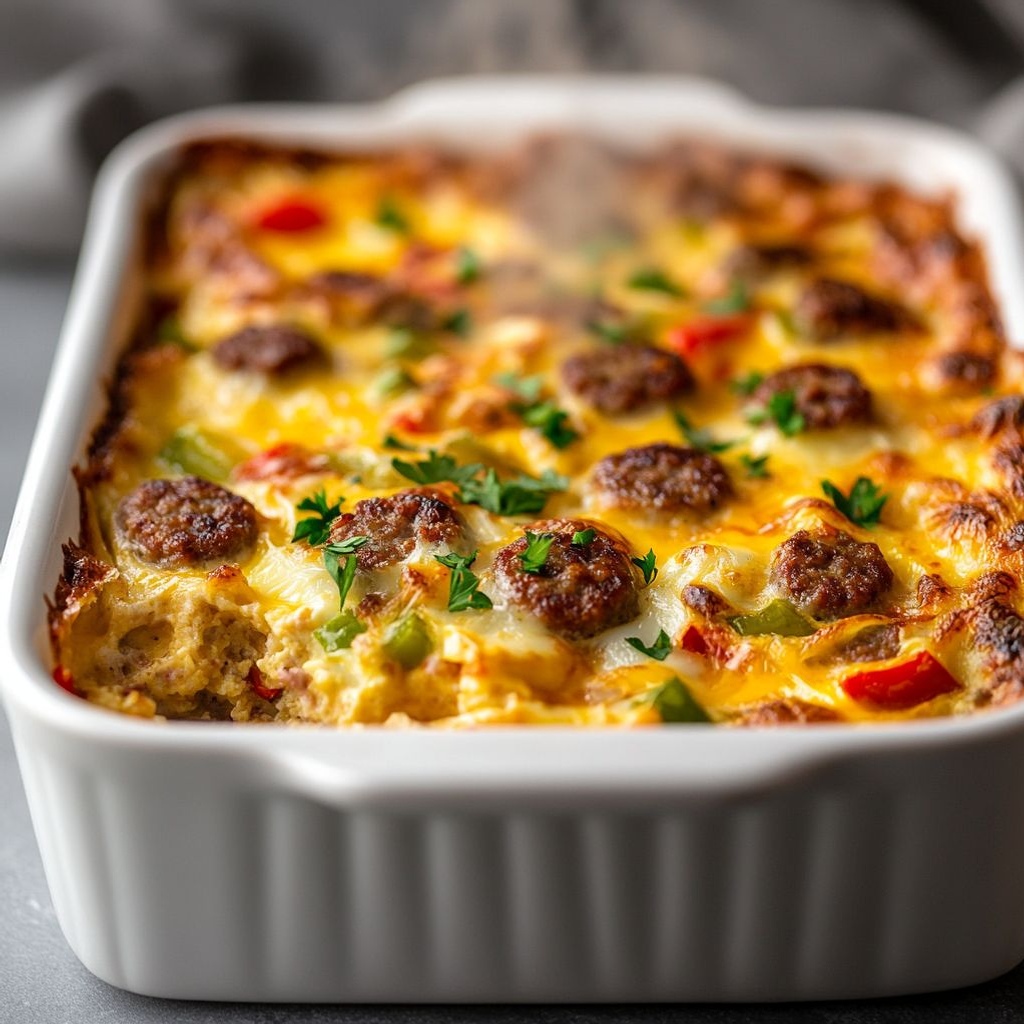 È un piatto al forno a base di uova, salsiccia, patate e formaggio, cotto finché le uova si rapprendono e la superficie diventa dorata.