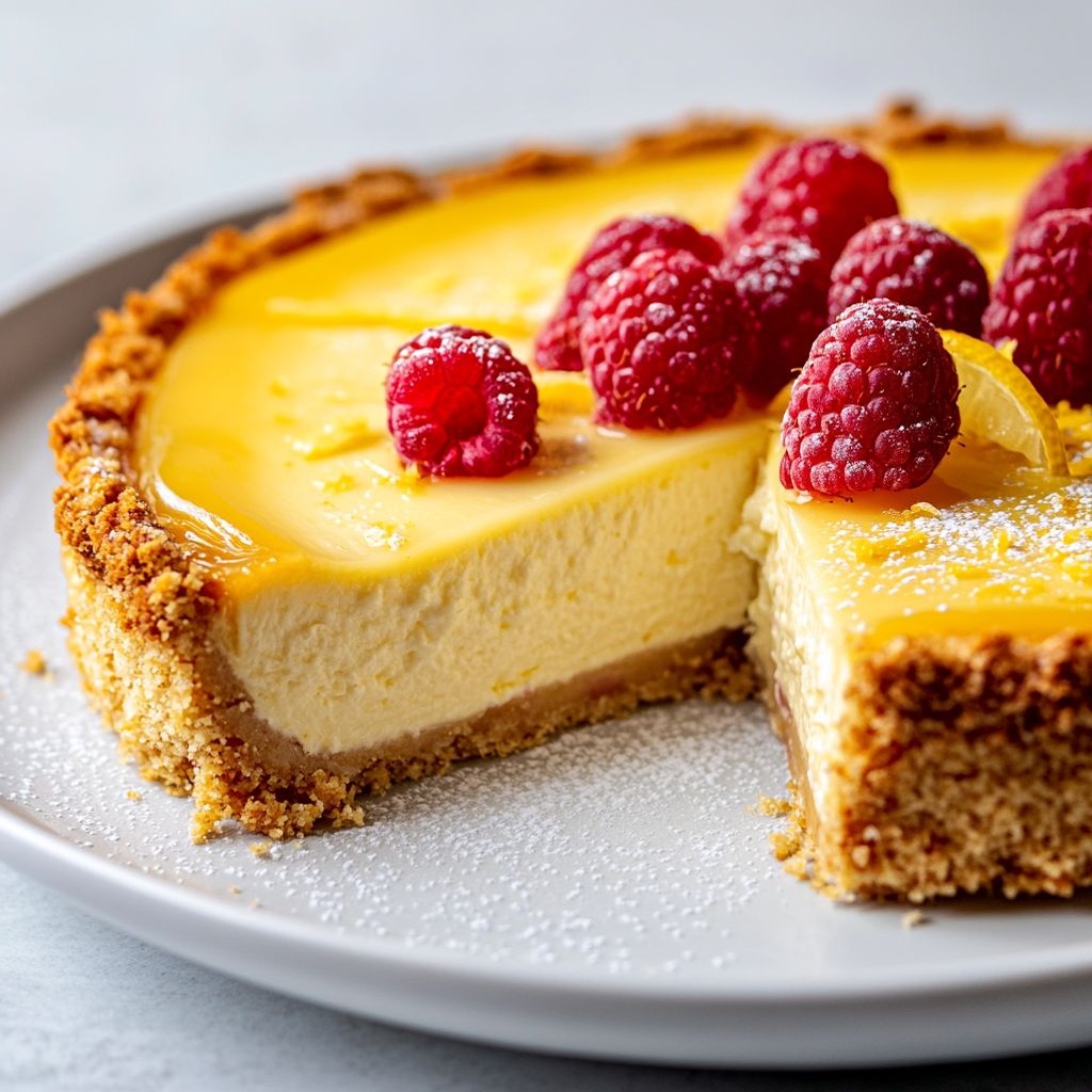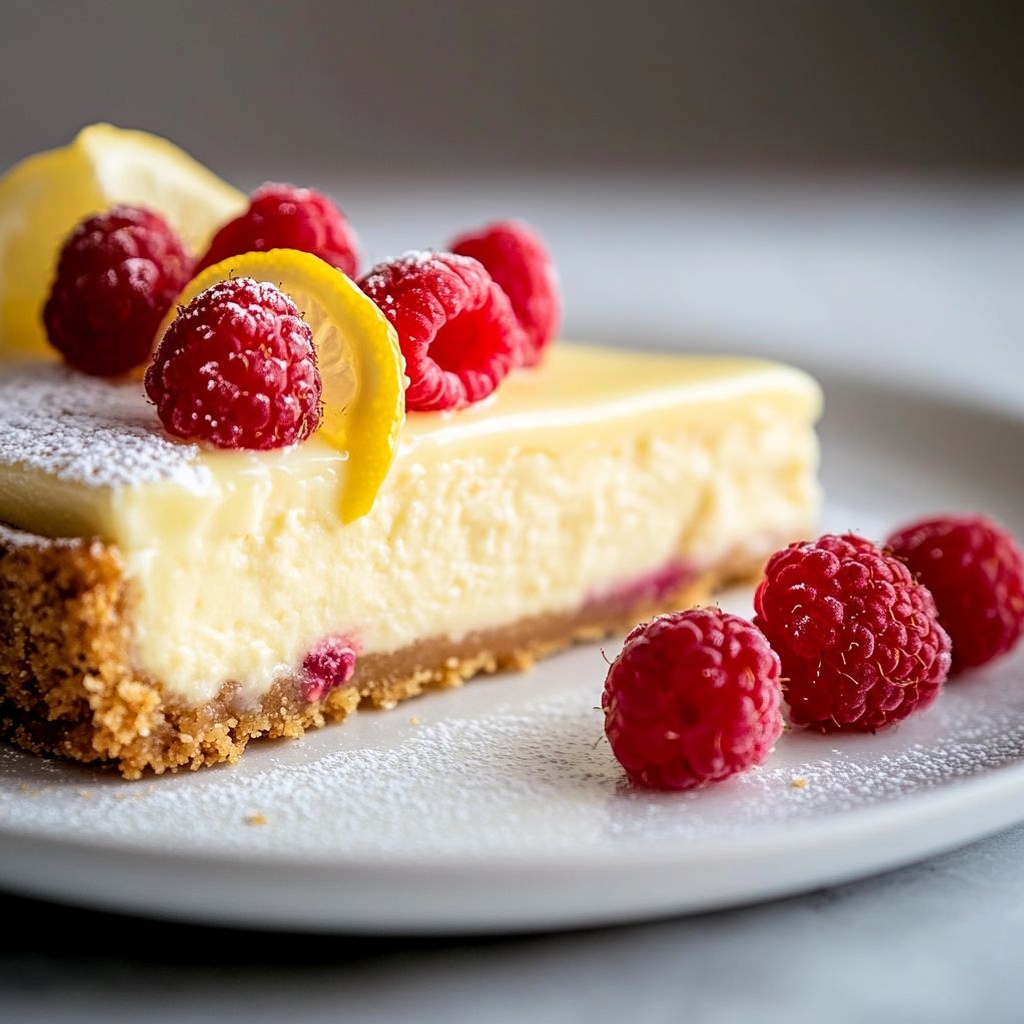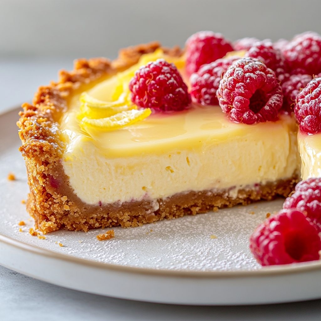 “These lemon raspberry cheesecake with a graham cracker crust is rich, creamy, and bright with lemon and raspberry swirls. You can customize it by using gluten-free crackers for the crust or by adding extra lemon zest to intensify the citrus note. The cake can be prepared ahead: bake the crust, blend the filling, swirl in raspberries, and chill until set. It freezes well in individual slices or whole cake portions for easy make-ahead desserts. For best texture and to prevent cracks, bake the cheesecake in a water bath and chill for at least 4 hours or overnight before slicing. Serve with fresh raspberries, a dollop of whipped cream, or a light berry coulis. Always use full-fat cream cheese and sour cream at room temperature to ensure a smooth, lump-free filling, and avoid overmixing once eggs are added. If you want a lighter crust, decrease butter a bit and press firmly; and ensure the crust is fully cooled before filling.”