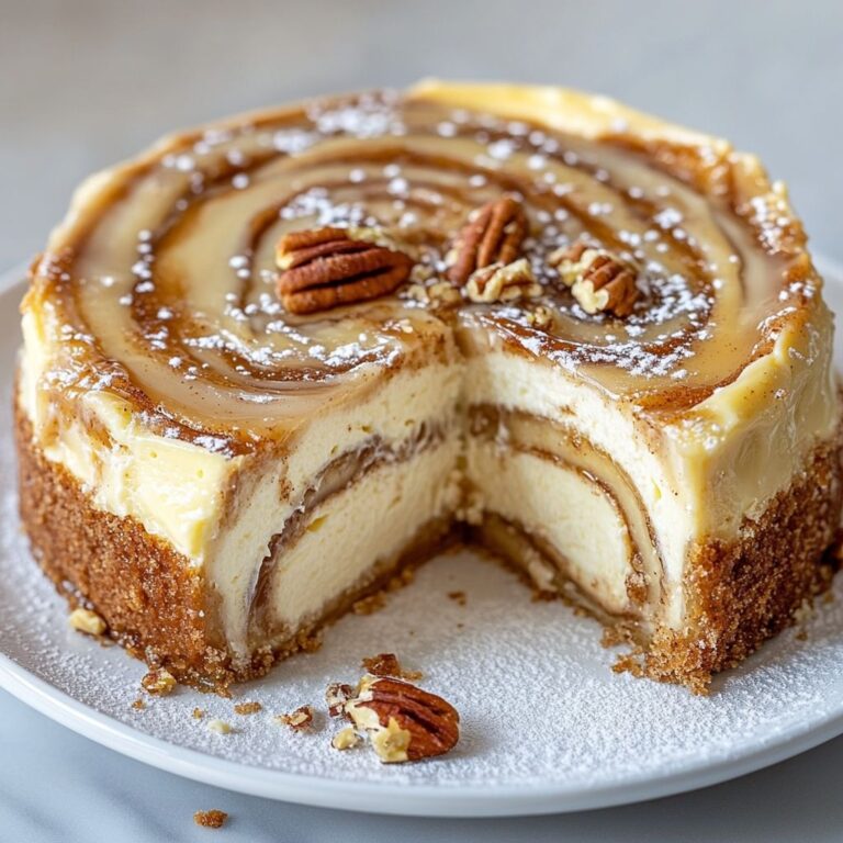 This cheesecake keeps beautifully when properly stored. If you plan to serve it over a couple of days, cover tightly and refrigerate. The flavors deepen and the texture firms up as it rests in the fridge. For longer storage, this dessert freezes well—wrap slices individually in parchment and place in an airtight container. Thaw in the refrigerator overnight before serving to maintain the creamy texture and prevent condensation from marring the surface. If you prefer to bake in advance and serve chilled the next day, simply allow the cheesecake to cool completely, then refrigerate; the chill time helps set the cinnamon swirls more distinctly, enhancing each bite. When serving, consider warming slices slightly (a few seconds in a microwave or a brief reheat in a low oven) to recapture the soft, bakery-fresh feel of the cinnamon roll while preserving the cheesecake’s creaminess. For parties or buffet settings, pre-slice the cheesecake and arrange the pieces on a platter with a dollop of whipped cream or a light fruit coulis for a polished presentation that’s easy for guests to grab.