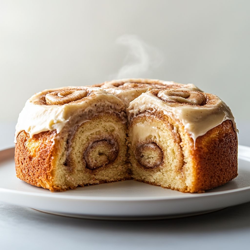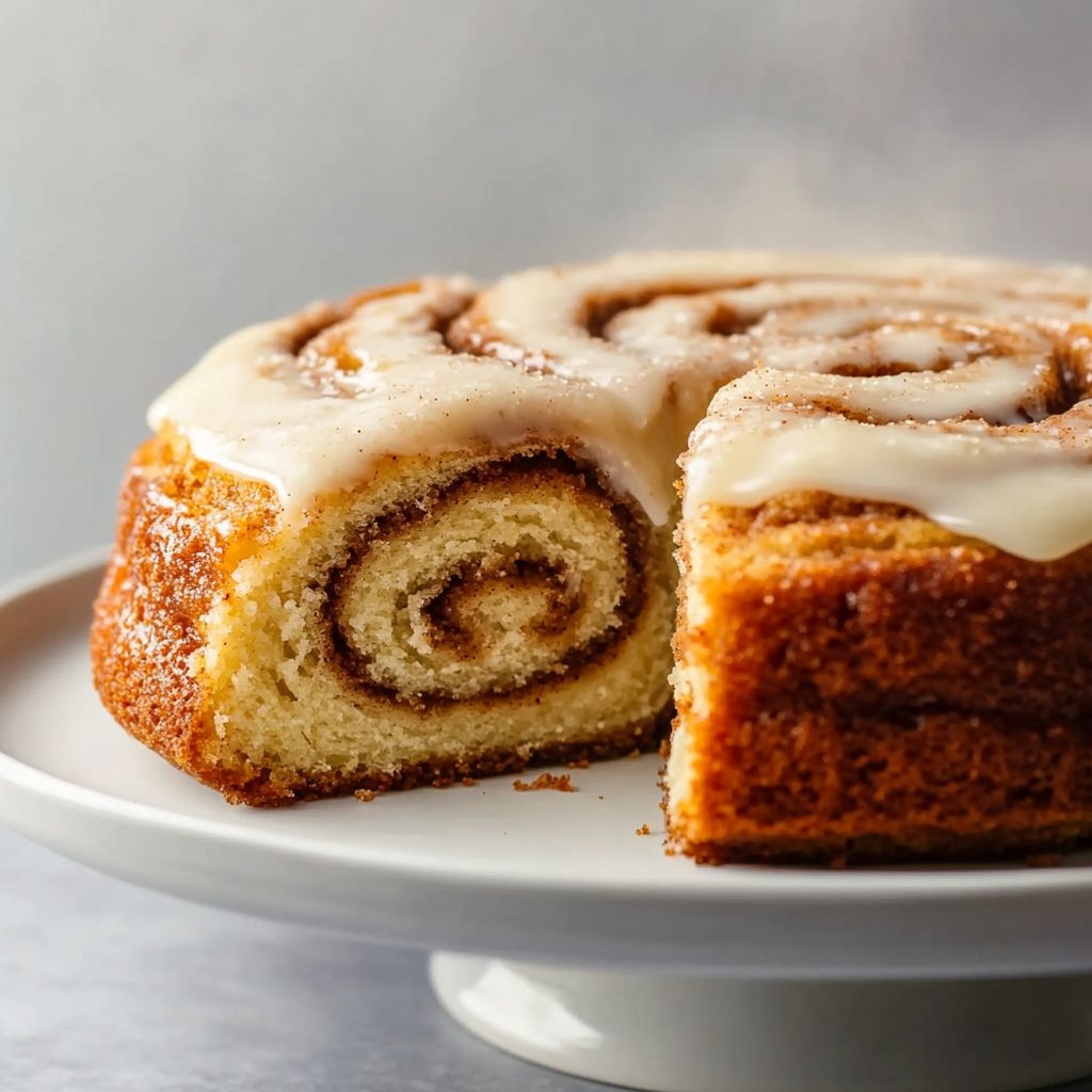 It’s a soft, tender cake swirled with cinnamon-sugar ribbons and finished with a creamy glaze, combining the cozy flavors of classic cinnamon rolls in a cake form.