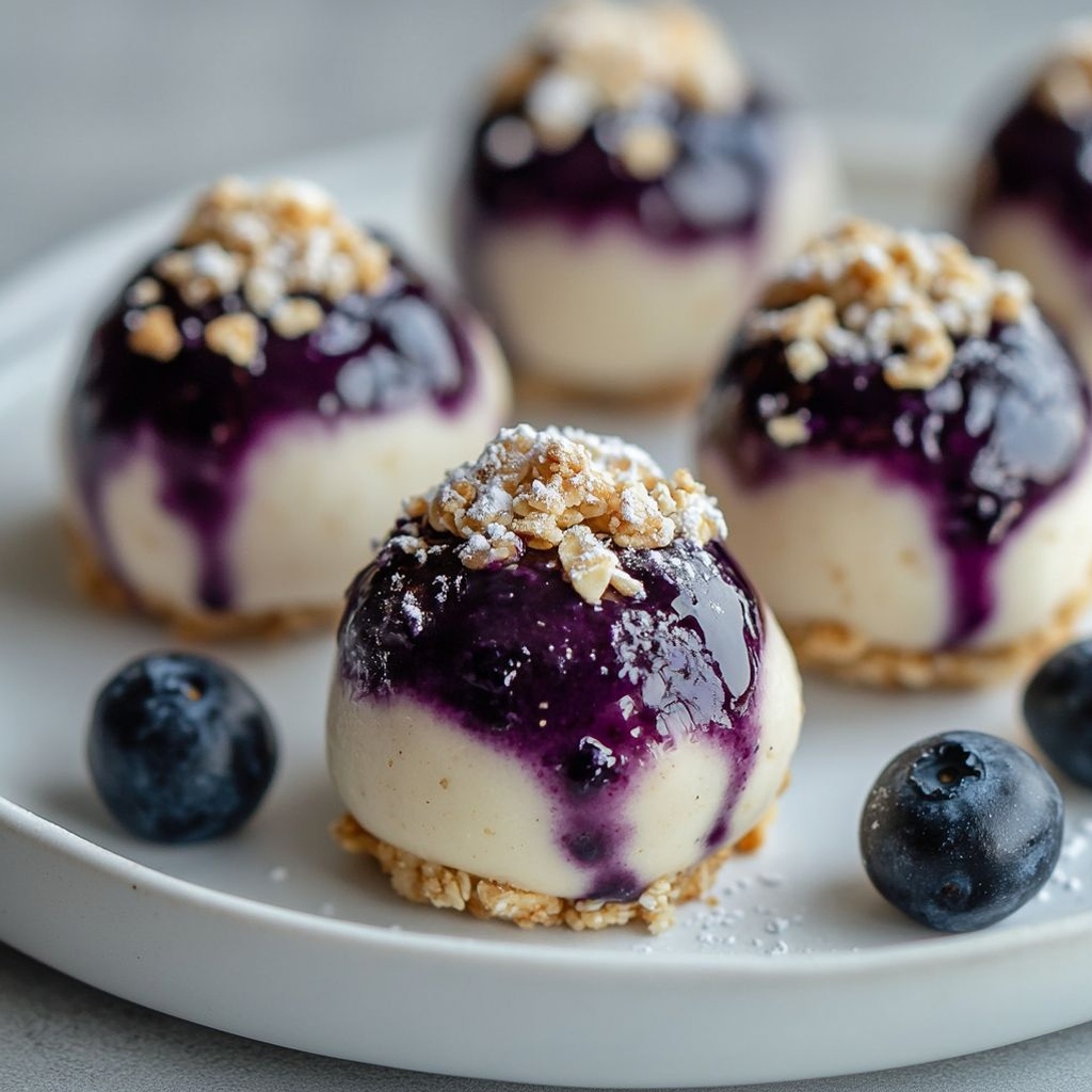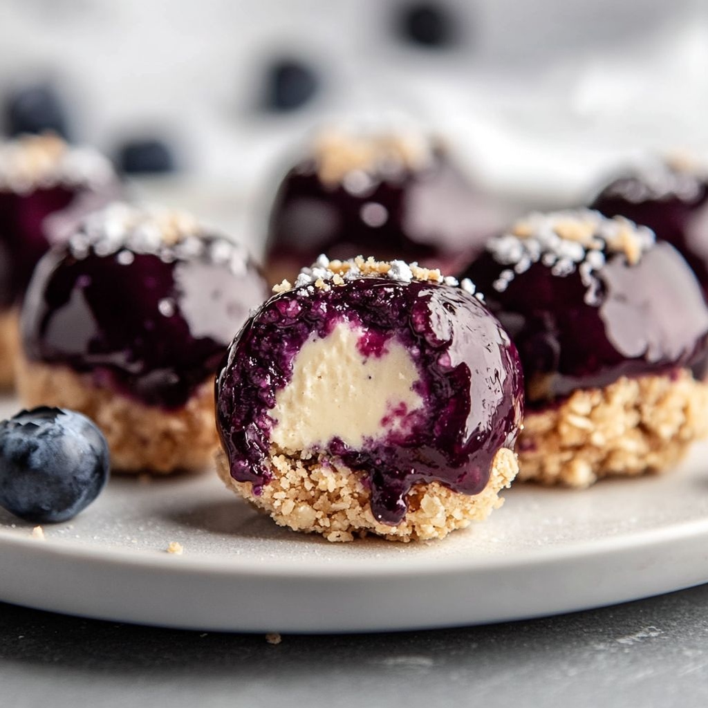 → A decorative coating enhances texture and presentation while adding a complementary flavor note. - Store the blueberry cheesecake energy balls in an airtight container in the refrigerator for up to 1 week, or freeze for up to 1 month; thaw briefly in the fridge before serving.