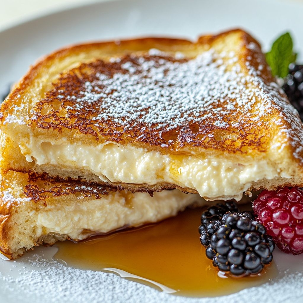 → Powdered sugar adds a delicate sweetness and visual finish; berries provide acidity and brightness while syrup enhances the creamy filling’s richness without making the toast soggy if used sparingly.