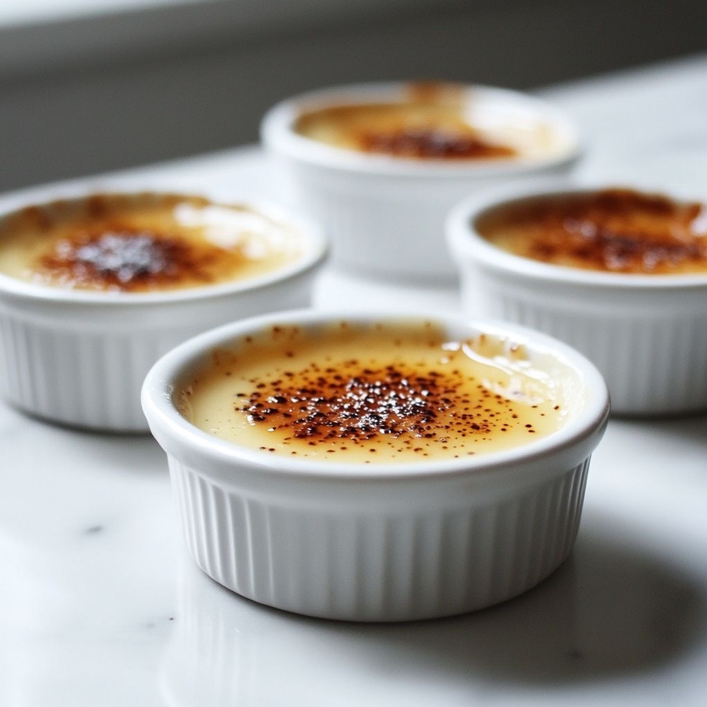 → Even torching produces a glossy, hard crack that contrasts beautifully with the creamy custard beneath; keep the flame moving to prevent scorching. - If you do not have a culinary torch, preheat your broiler and place the ramekins on a rimmed baking sheet, then broil for 1–3 minutes on high, watching constantly until the crust achieves a deep amber color, and remove promptly.