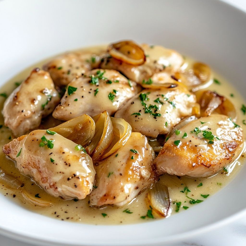 - Make-ahead for gatherings: Prepare the onion base and chicken separately up to the point of finishing the sauce. Reheat the chicken gently, then swirl in the cream and onions to finish just before serving.