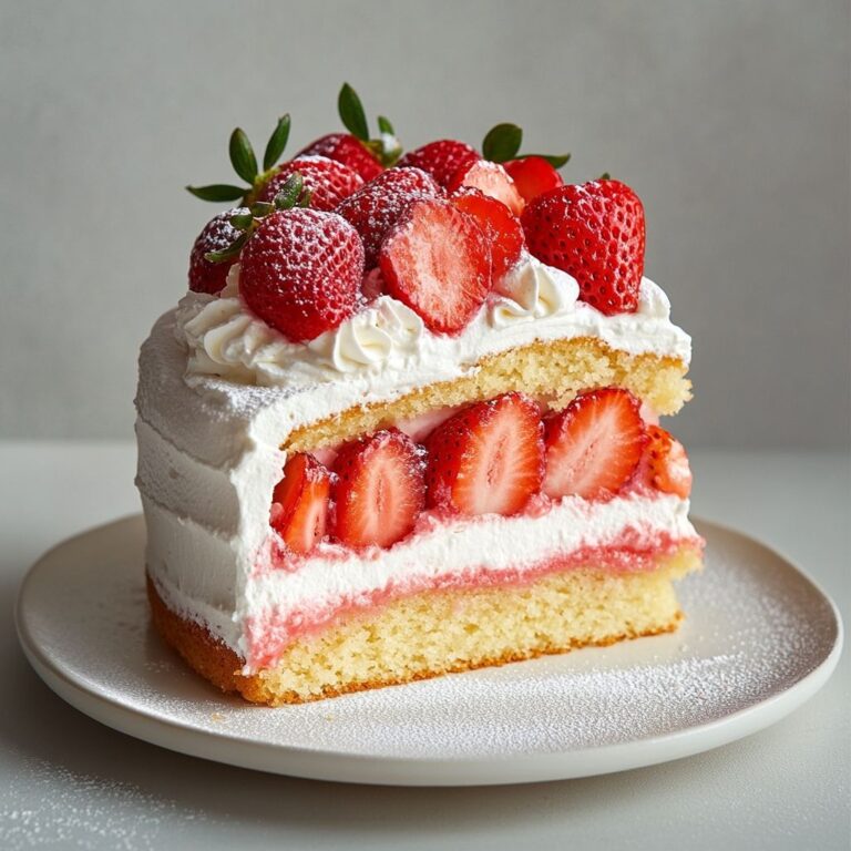 Historically, whipped cream has long held a place in celebratory Italian desserts, where dairy, fresh fruit, and a touch of vanilla or citrus come together harmoniously. This cake sits comfortably within that tradition, offering a modern articulation of a timeless concept: a simple sponge cake that becomes special through the company of fruit and cream. The strawberries, often at their best during late spring and early summer, give the cake a seasonal heartbeat, turning every gathering into a small festival of color and aroma. Whether you’re recreating a Sunday ritual or presenting a dessert for guests with diverse tastes, this cake communicates warmth, hospitality, and a little bit of culinary poetry in every slice.