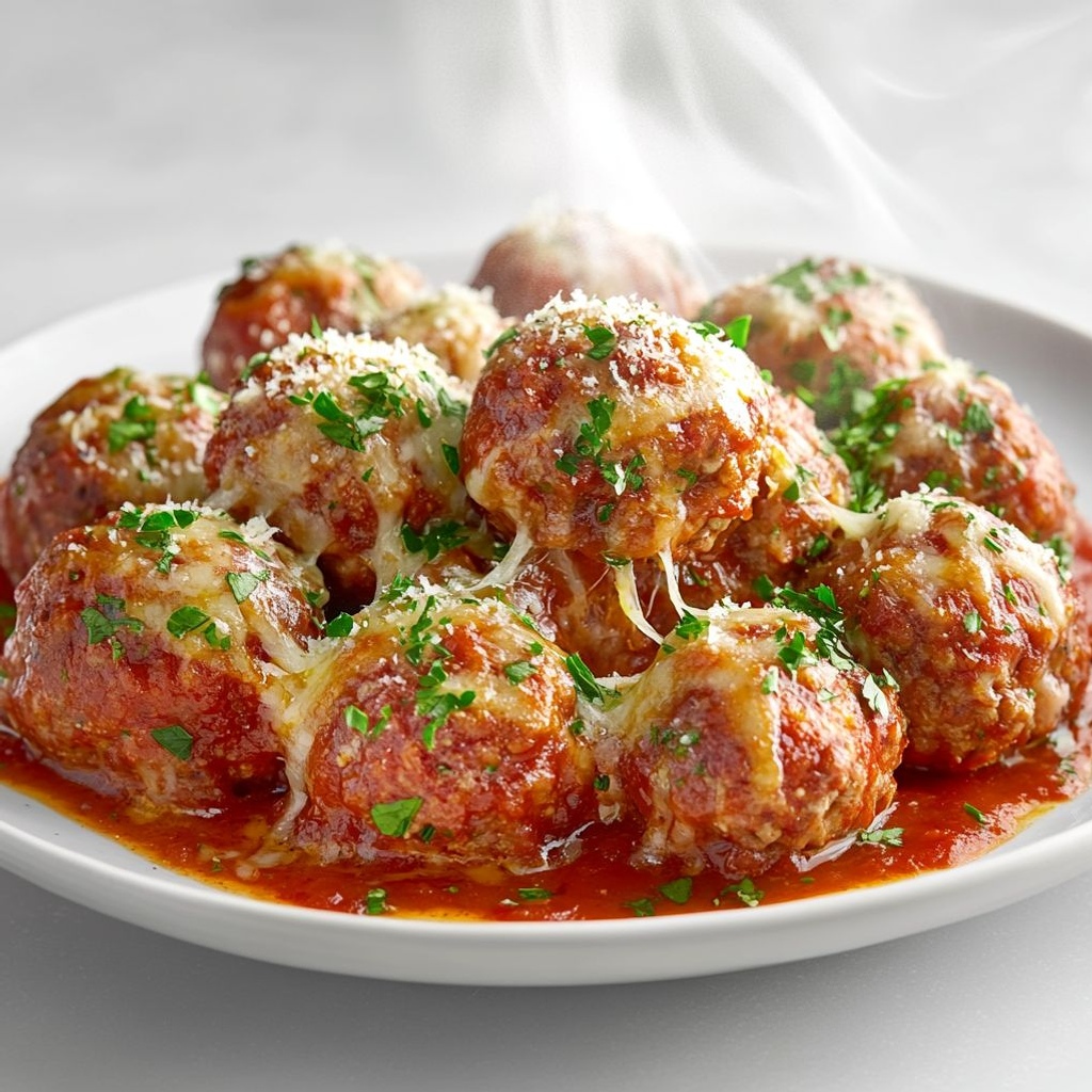 These baked meatballs are juicy, flavorful, and versatile, made with a lean ground beef mixture bound with breadcrumbs, grated Parmesan, milk, and an egg, then seasoned with garlic, parsley, and oregano and simmered in marinara until tender. For best texture, handle the mixture gently, chill it for 20-30 minutes before shaping, and avoid overmixing to keep the interior light. If the breadcrumbs seem dry, hydrate them in a few tablespoons of milk to improve moisture retention and binding. To keep the dish gluten-free, use plain or gluten-free breadcrumbs and choose a marinara you trust; you can also substitute with crushed gluten-free crackers if desired. For dairy-free versions, replace the milk with unsweetened non-dairy milk and skip the cheese, or use a dairy-free Parmesan substitute. Optional onion adds sweetness; sauté the onion until translucent and cool before mixing for milder flavor. A little olive oil in the meat mixture helps with browning and tenderness, especially with very lean beef. Shape evenly sized meatballs so they cook through at the same rate, then bake them in sauce or briefly bake first on a sheet pan and finish in the sauce to keep them saucy. Taste and adjust salt after a cooked sample, since cheese and sauce contribute salt. The meatballs freeze well—raw for later baking, or cooked and reheated—and they pair beautifully with pasta, zucchini noodles, polenta, or crusty bread. Finish with torn fresh basil or shredded mozzarella for a glossy, flavorful finish.