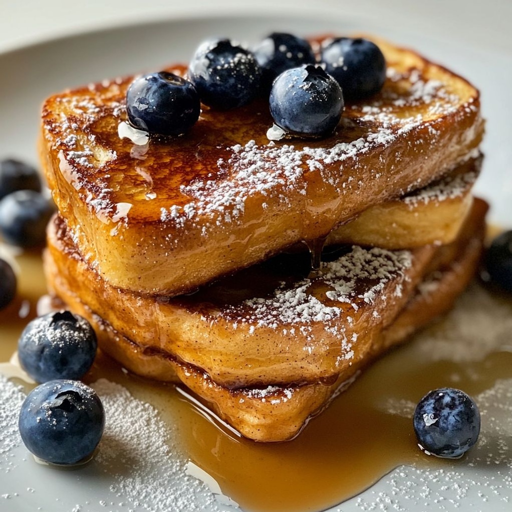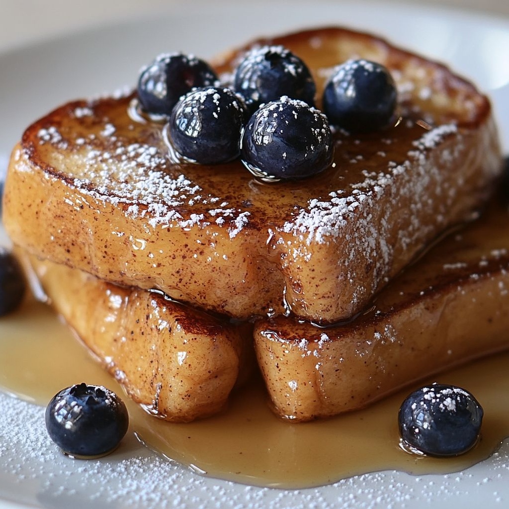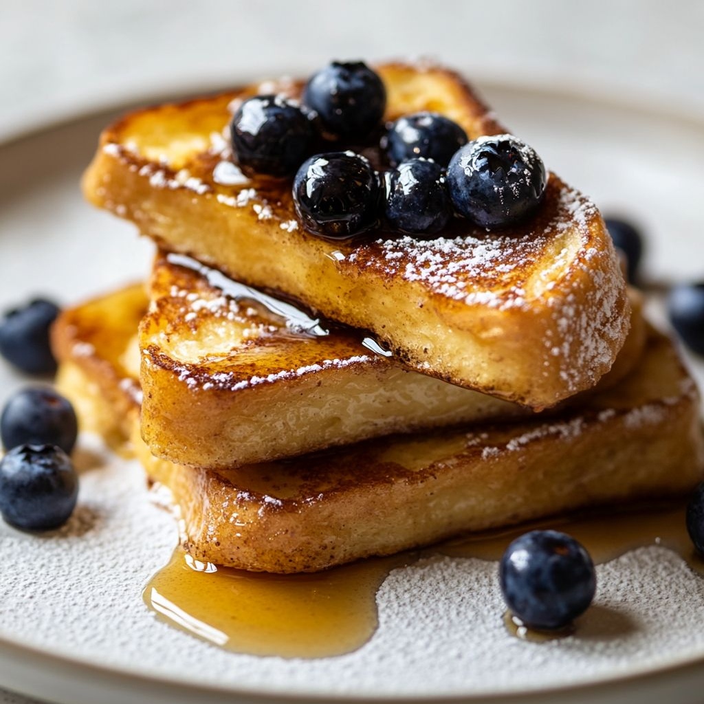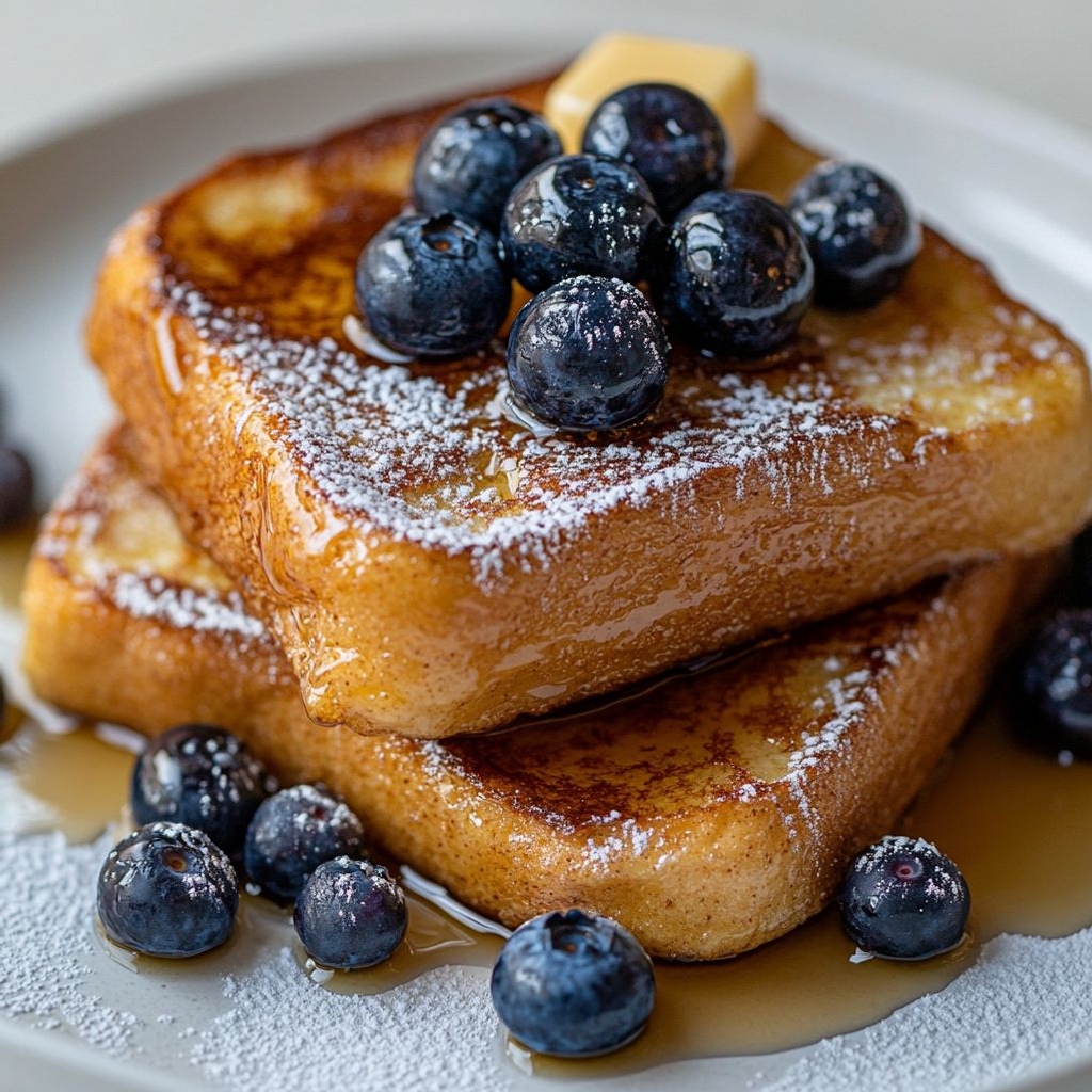 → The cornstarch slurry quickly thickens the sauce for a more pronounced drizzle and prevents a runny finish. - Assemble and plate: arrange the warm French toast slices on plates, spoon or drizzle the blueberry sauce over the top, and dust with powdered sugar if using; garnish with additional fresh blueberries and torn mint leaves for color and aroma.