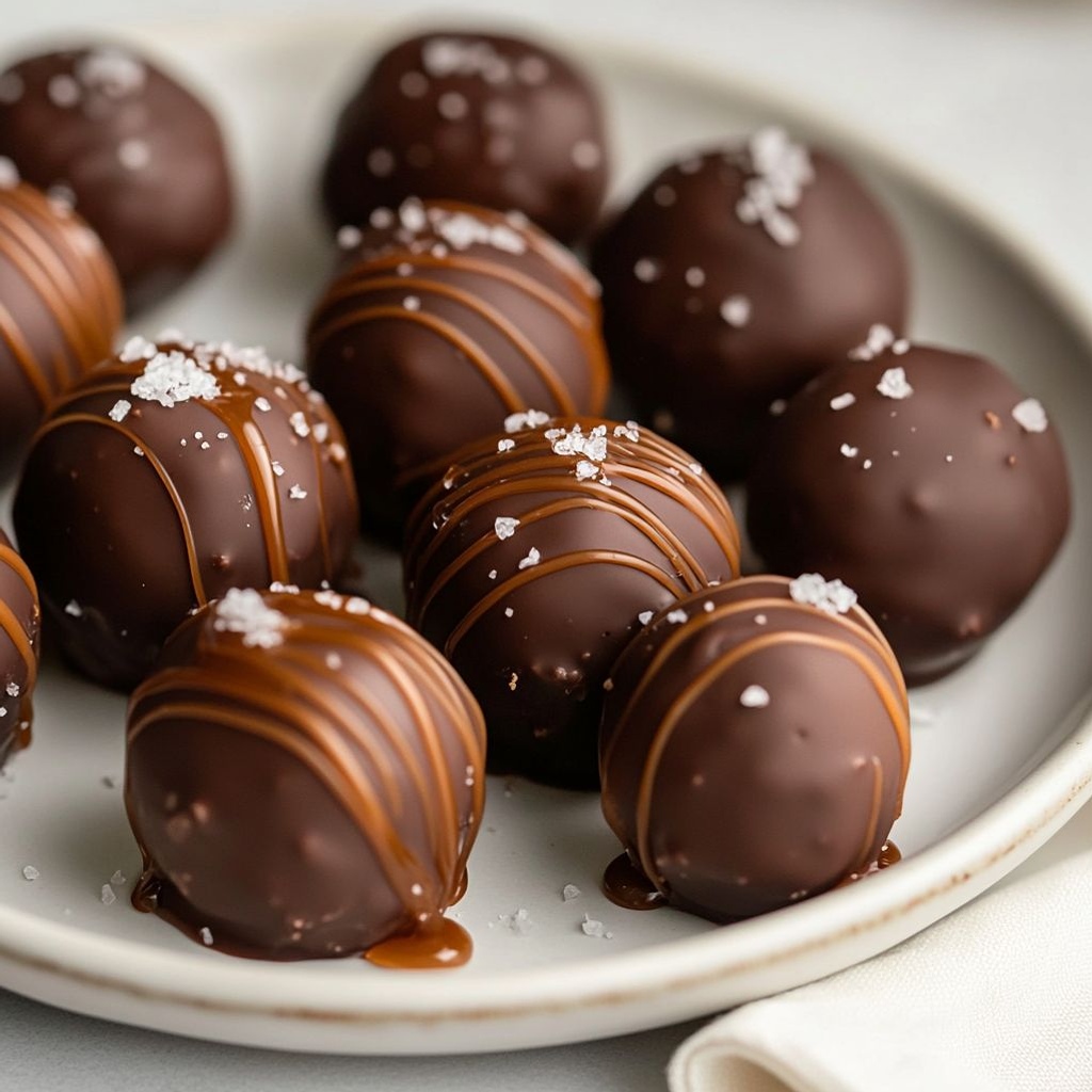 → A light salt finish intensifies caramel and chocolate flavors and creates a professional, balanced finish. - Store the finished Caramel Fudge Truffles in an airtight container, layering with parchment between rows, and refrigerate for best snap; allow them to temper at room temperature for about 15 minutes before serving.