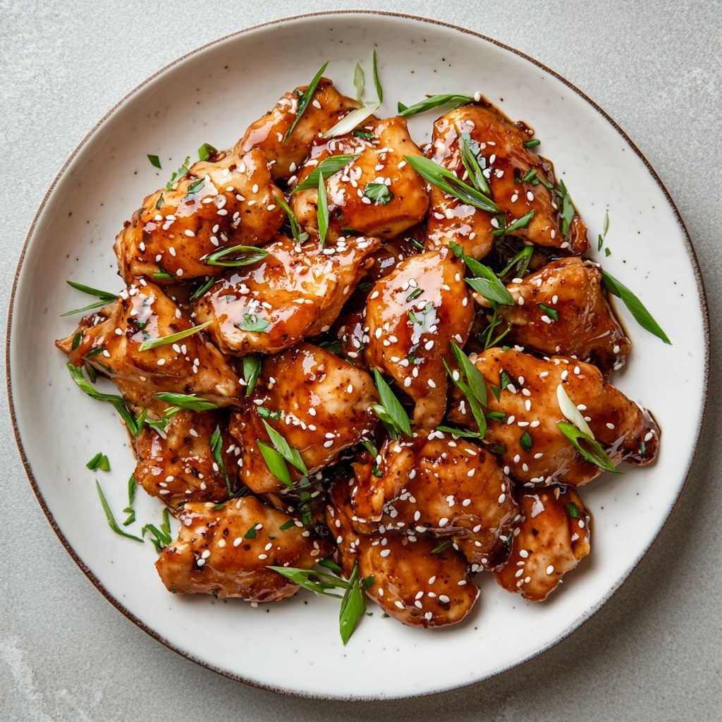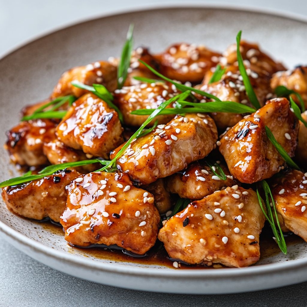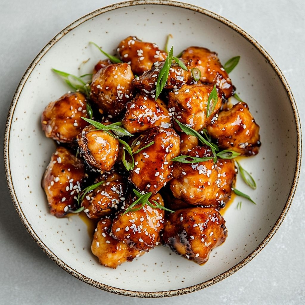 These Healthy Sticky Chicken bites are a weeknight-friendly dish featuring juicy boneless thighs lacquered in a glossy, savory-sweet glaze that clings to the meat. For gluten-free diets, use tamari instead of soy sauce and ensure the cornstarch is certified gluten-free. You can customize the glaze by adjusting honey or maple syrup for sweetness, adding a splash of rice vinegar for brightness, or stirring in a pinch of red pepper flakes for heat. For an extra layer of depth, finish the glaze with 1 teaspoon toasted sesame oil off the heat and stir well.