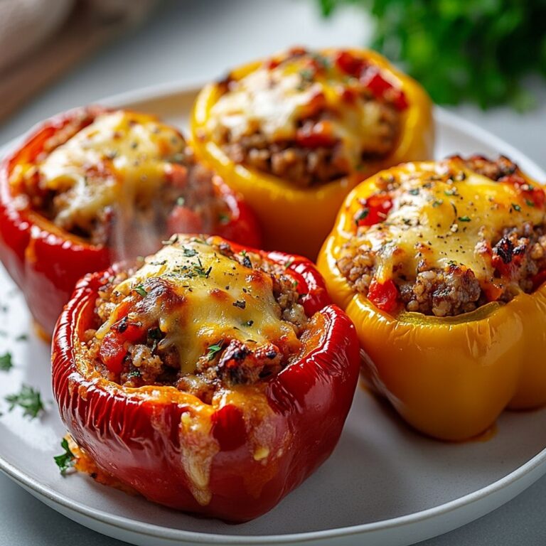→ Covered baking traps steam and heat, cooking the peppers evenly and letting flavors meld without drying out the interior. - Remove the foil, continue baking for an additional 5–10 minutes to melt and lightly brown the cheese topping; watch closely to prevent scorching and remove when cheese is fully melted and bubbling.