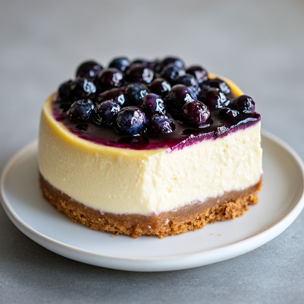 A blueberry cheesecake is a creamy, tangy dessert made with a rich cream cheese filling on a crust (usually graham cracker or biscuit-based). It’s often topped with a blueberry sauce or fresh blueberries. It can be baked for a classic texture or made as a no-bake version for a lighter finish.