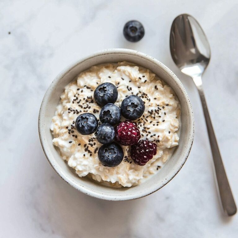 → Toasted nuts provide a contrasting crunch and deepen nutty flavor; chia and flax add fiber and omega-3s while thickening the mixture subtly. - Spoon the finished Blueberry Cottage Cheese Protein Oats into bowls, top with a few extra blueberries if available, and serve warm with a light drizzle of maple or a swirl of additional cottage cheese for extra creaminess; enjoy immediately for best texture and aroma.