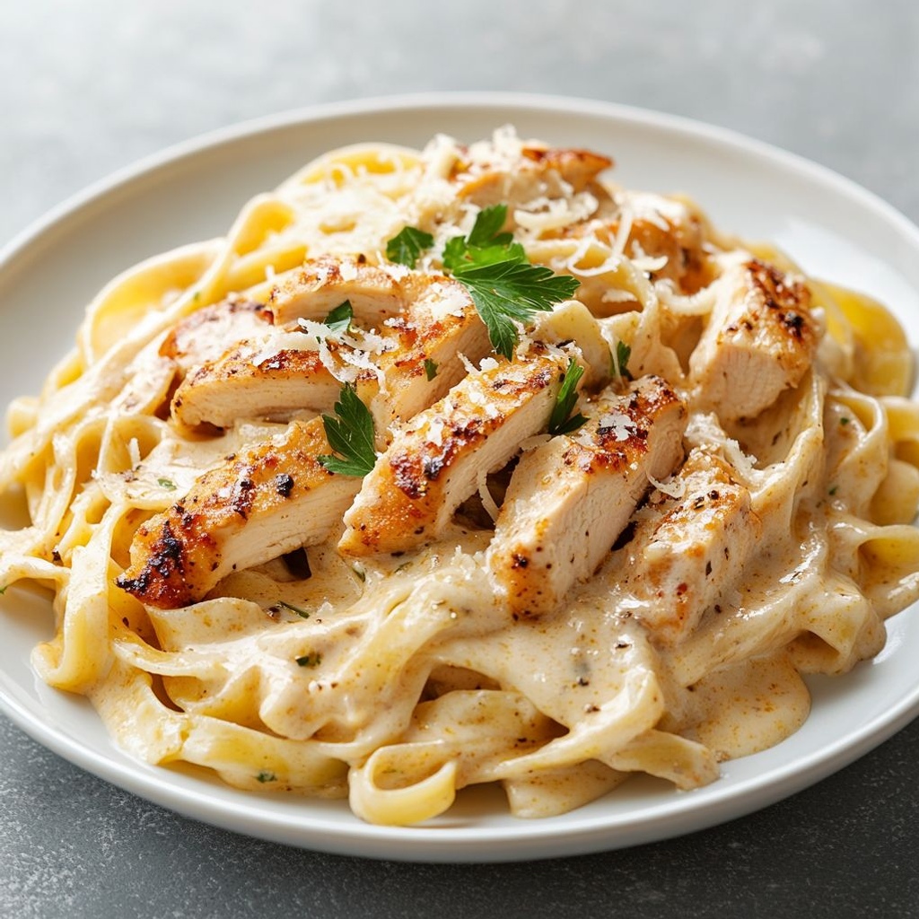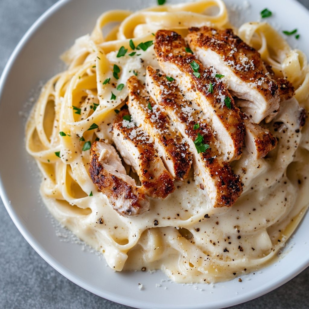 A rich pasta dish featuring seared Cajun-seasoned chicken tossed with fettuccine in a creamy parmesan sauce, finished with a hint of spice from Cajun seasoning and red pepper flakes for a little kick.