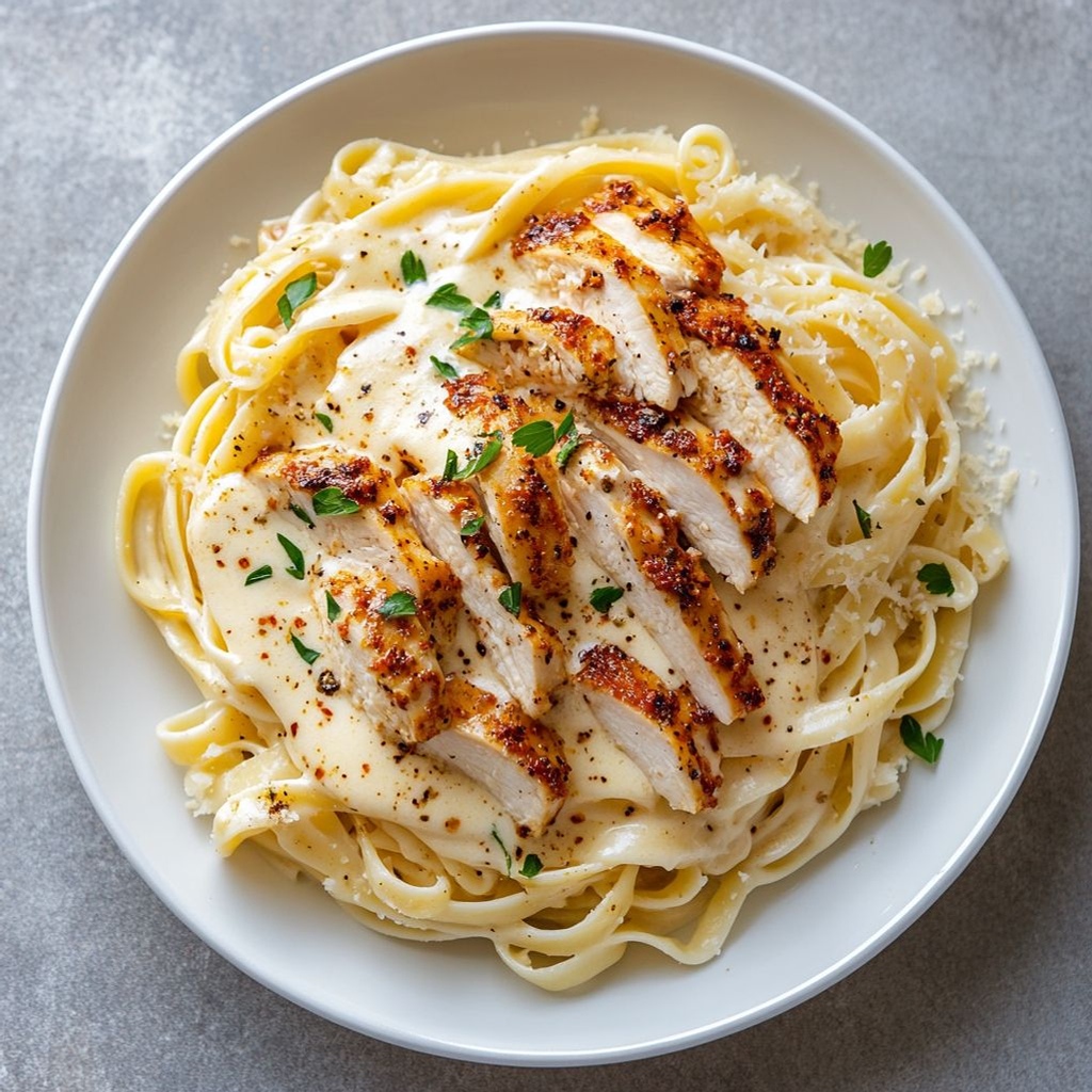 → The pasta forms the hearty base to hold the creamy sauce. Cook in salted water until al dente (about 8-10 minutes, depending on brand). Reserve about 1/2 cup of the cooking water to loosen the sauce if needed, then drain and toss with the Alfredo completely for a silky finish. - – 1 tablespoon olive oil (for searing chicken)