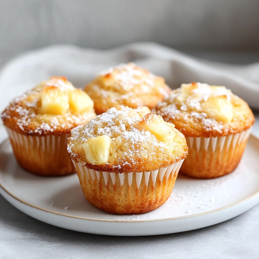 → Resting allows steam to escape and the crumb to firm, which makes handling and eating easier and prevents a gummy texture. - Optional glaze: whisk 2 tablespoons reserved pineapple juice with 1/3 cup powdered sugar until smooth and glossy; drizzle over cooled muffins just before serving, thinning with a splash more juice if needed.