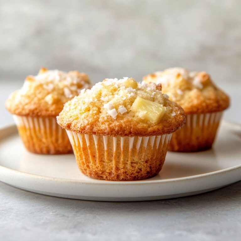 These tropical coconut and pineapple cottage cheese muffins are moist and fluffy, thanks to blended cottage cheese and juicy pineapple, with a sunny coconut aroma from toasted shredded coconut. For best texture, drain the pineapple well and lightly whisk the eggs before adding them to the batter. If you need a gluten-free option, substitute the all-purpose flour with a 1:1 gluten-free flour blend and consider adding an extra tablespoon of milk or juice to compensate for moisture; sift the flour with the baking powder and baking soda to distribute leaveners evenly and prevent dense spots. Toast the coconut lightly in a dry skillet to deepen flavor before folding into the batter. You can customize with 1/3 cup chopped macadamia nuts or 1/4 cup candied pineapple for extra bite. To finish, reserve some pineapple juice to adjust moisture if the batter seems too stiff, or use it in a quick glaze by mixing with powdered sugar. Muffins can be topped with the additional 2 tablespoons shredded coconut for a browned crust. Bake at 350°F (180°C) until golden and a toothpick comes out clean; cool in the pan briefly before transferring to a rack. These muffins freeze well and make a great grab-and-go option; reheat in a moderate oven or in the microwave as desired. For a glossy finish, whisk 2 tablespoons pineapple juice with 1/3 cup powdered sugar and drizzle after muffins cool. Always ensure your cottage cheese is smooth and creamy and consider dairy-free swaps like melted coconut oil if you prefer a dairy-free version.