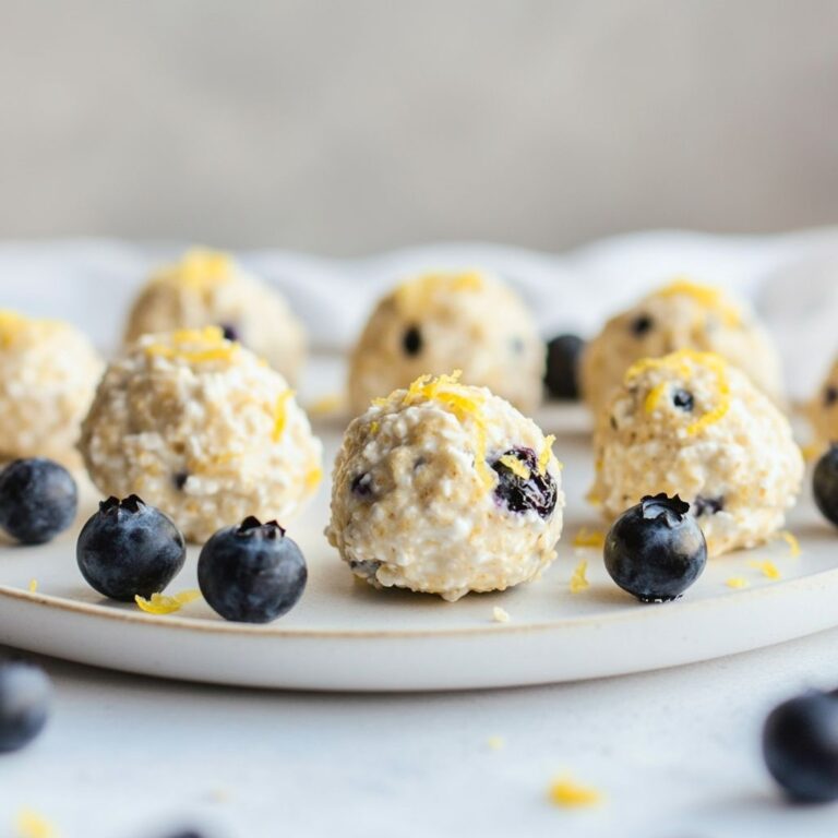 Imagine a tiny sunlit bite that packs a bright lemon-kissed zing, the soft tang of cottage cheese, and the sweet pop of blueberries all in one compact, portable morsel. These Lemon Blueberry Cottage Cheese Protein Bites are the kind of snack that turns a quick break into a moment of joy. They’re not just treats; they’re little energy boosters that fit into your busy day without fuss. The aroma alone invites you to lean in—think fresh lemon zest lifting the air, a subtle dairy creaminess that feels comforting, and berries bursting with summertime sweetness. Each bite promises a balance that satisfies both the sweet tooth and the hunger that comes with a morning workout, a long meeting, or an afternoon craving. This description isn’t just about flavor; it’s about the ritual of snacking well—where nutrition meets convenience without sacrificing texture or personality. If you’re after something that feels indulgent yet wholesome, refined yet approachable, these bites hit the sweet spot. They’re easy to toss into a bag, quick to enjoy on a crowded subway platform, and resilient enough to travel to a picnic or a desk drawer without losing their charm. Welcome to a snack that tastes like a little celebration in a bite-sized form, and that leaves you feeling a touch energized rather than weighed down.