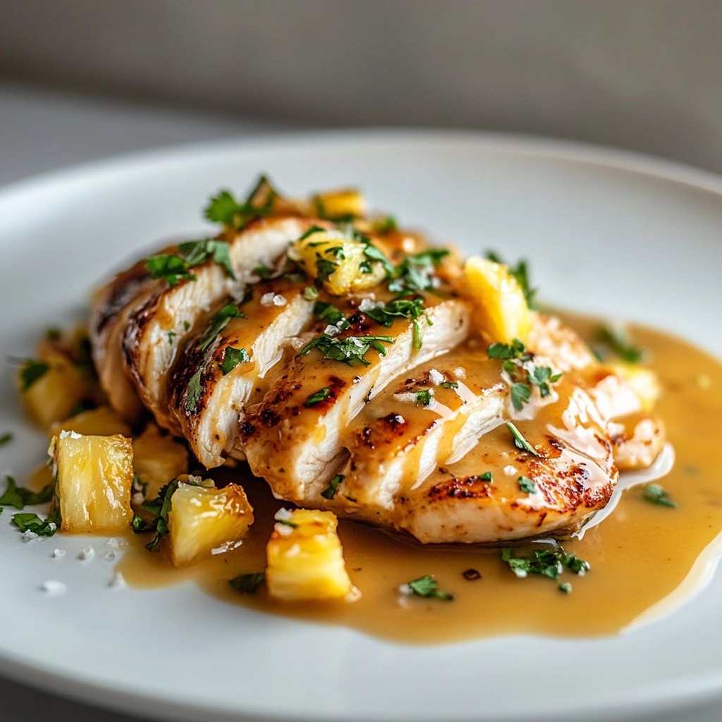 Popular pairings include rice (white or coconut rice), mashed or roasted potatoes, steamed vegetables, or a fresh green salad. A extra pineapple salsa or a light creamy sauce complements the tropical flavor profile well.