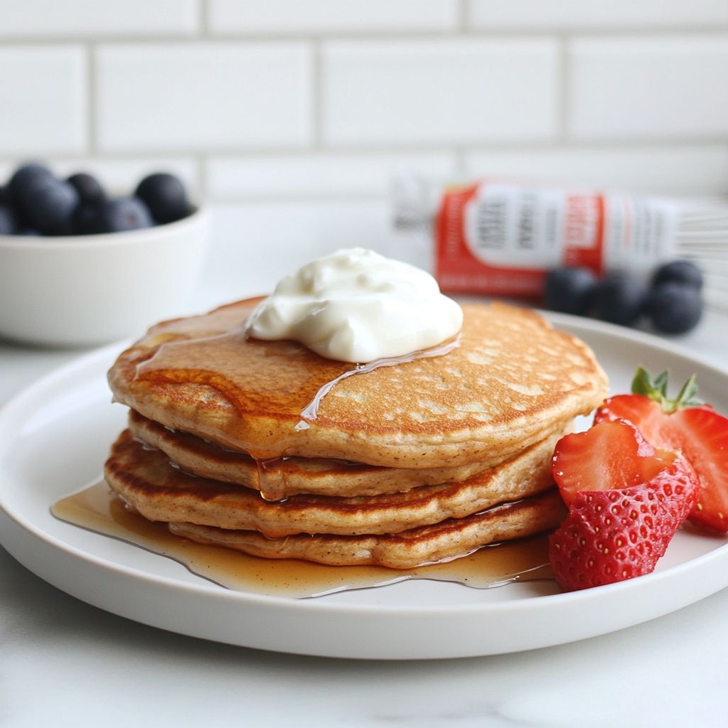 → Stacking briefly on a warm plate prevents cooling too quickly and helps maintain a soft, fluffy texture. - Serve with toppings of choice (maple syrup, yogurt, berries, or nuts) and consider parchment between pancakes if stacking for seconds to prevent sticking.