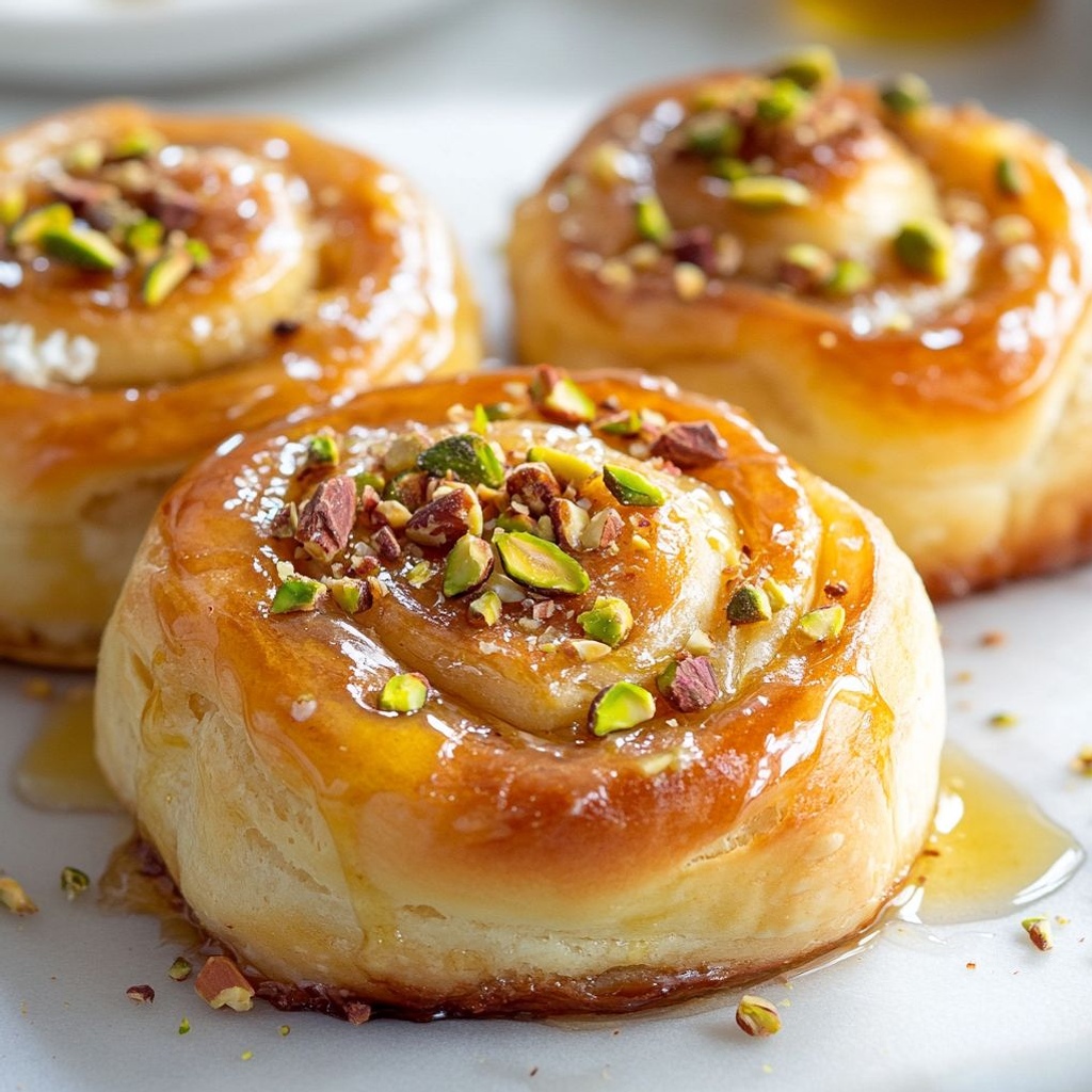 → The glaze adds shine and a touch more sweetness while the buns are still warm, helping the surface stay moist and appealing. - While the glaze sets, sprinkle 1–2 tablespoons finely chopped toasted pistachios over the tops for contrast and aroma.