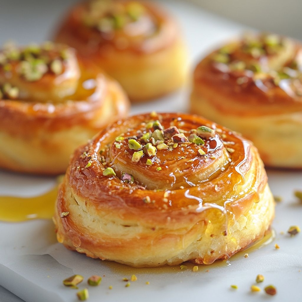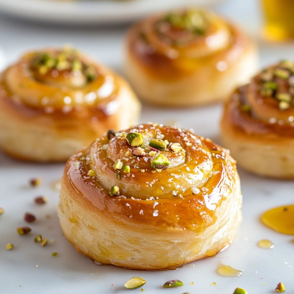 → The pistachio topping adds color, crunch, and a nutty fragrance that enhances the pistachio-forward filling. - Let the buns cool in the pan for about 15 minutes, then transfer to a wire rack to finish cooling; serve warm or at room temperature as desired.
