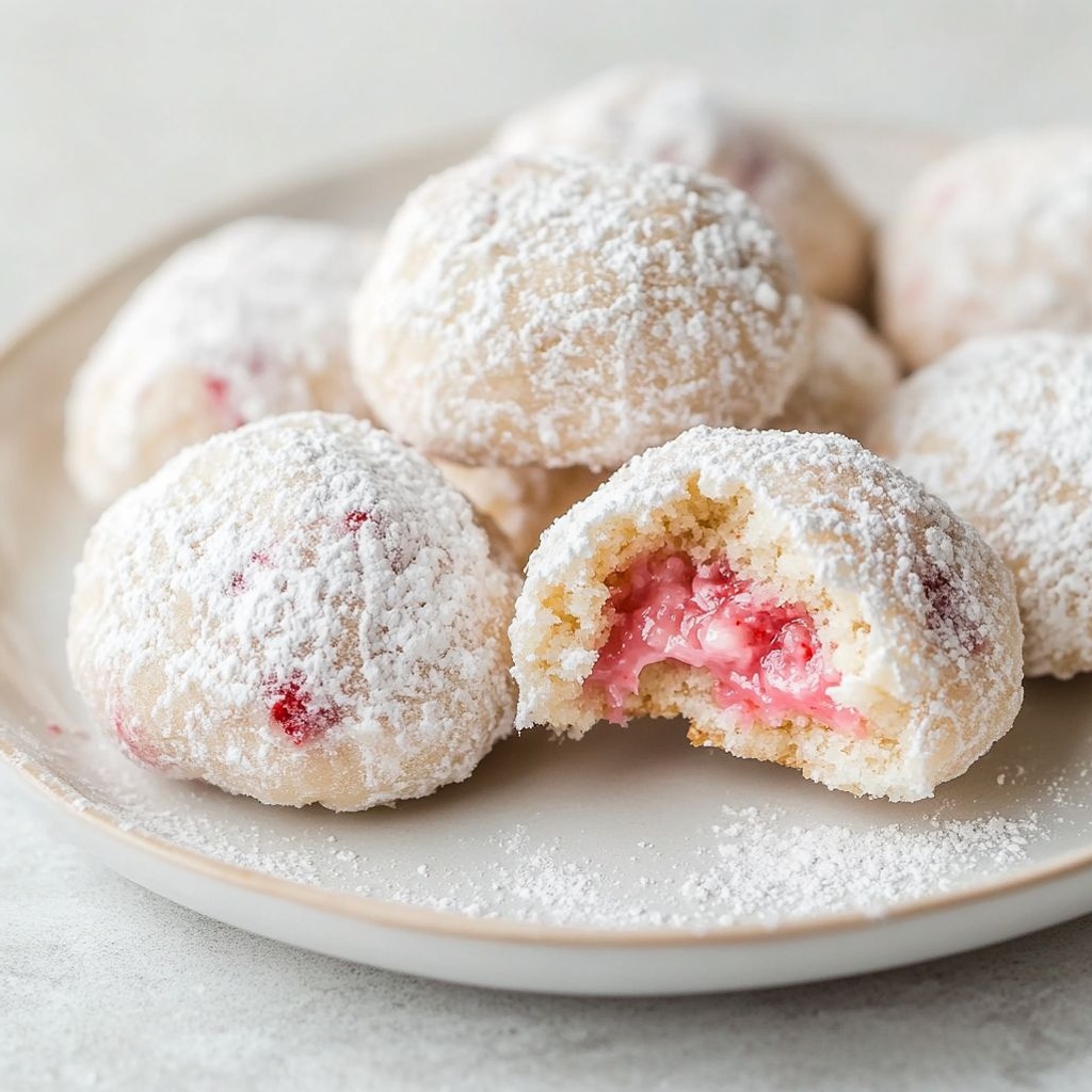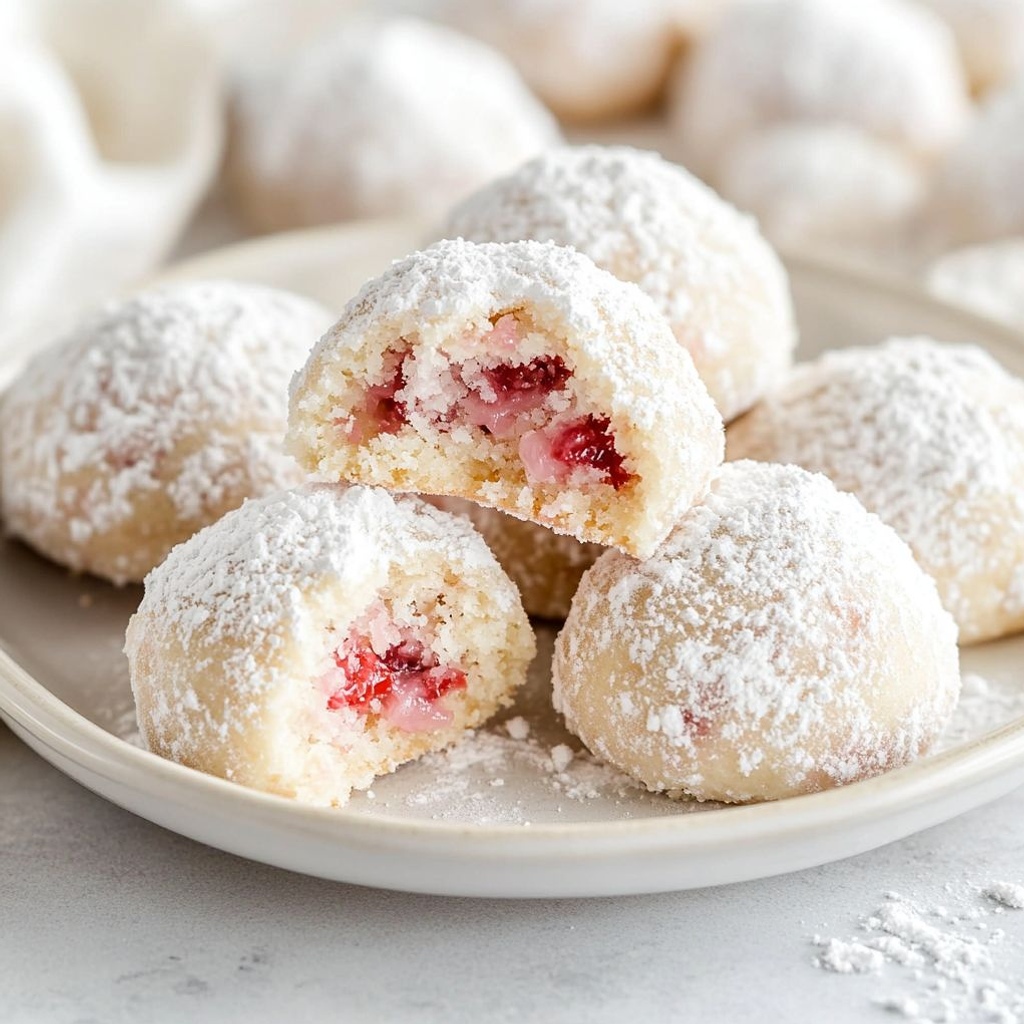 Imagine a tray of delicate, snow-white spheres glinting like tiny winter treasures, their surfaces dusted with a veil of powdered sugar that melts away at the first touch. Inside, a soft, crumbly center unfurls with a surprising, sun-kissed note of strawberry—bright, fruity, and just a whisper tart. Strawberry Snowball Cookies are that charming paradox: elegant in appearance, playful in flavor, and utterly comforting with every bite. They evoke memory and celebration in one graceful bite, the kind of cookie you reach for when you want something that feels festive enough for a holiday platter and effortless enough for a casual afternoon tea. The scent alone—cream, butter, and a kiss of strawberry—has a way of pulling people to the kitchen, drawing smiles as they anticipate that first powder-sugared bite. If you’re seeking a cookie that feels both timeless and fresh, traditional yet with a modern twist, this is your new go-to. The name itself conjures a scene: snow on pine, berries kissed by sunlight, a cozy kitchen where laughter lingers and the oven hums softly in the background. Get ready to fall in love with a treat that tastes like a little celebration in every mouthful.