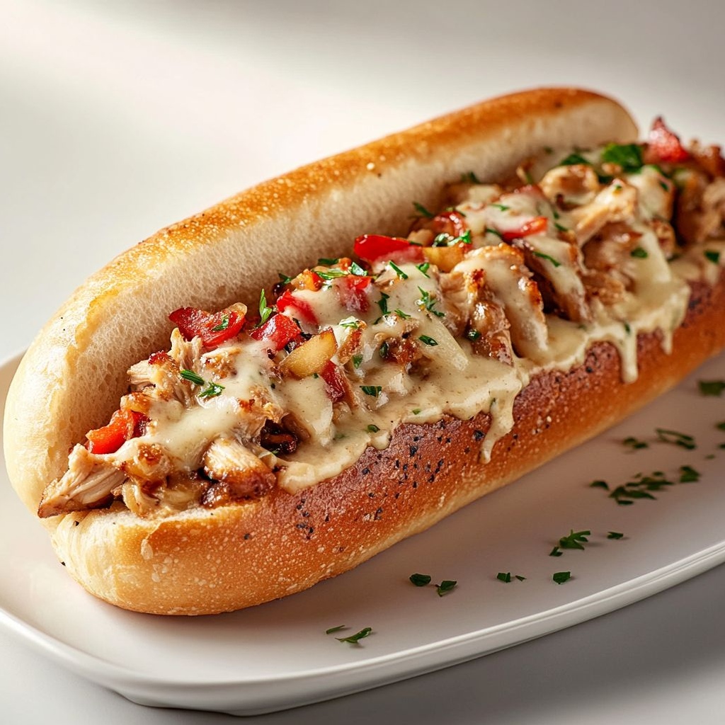 Whether you’re feeding a busy family on a weeknight, craving a comforting weekend treat, or looking for a crowd-pleasing option for casual gatherings, this recipe delivers. It’s the kind of dish that tastes familiar—like a Philly cheesesteak reimagined with a drizzle of Italian soul—yet it carries its own distinct personality. Each bite invites you to slow down, savor the layering of textures, and appreciate how simple ingredients—garlic, Parmesan, chicken, peppers, onions, and bread—can come together to deliver something utterly memorable. The scent alone is enough to summon a smile and a hint of nostalgia for kitchens past and meals that felt like a hug.