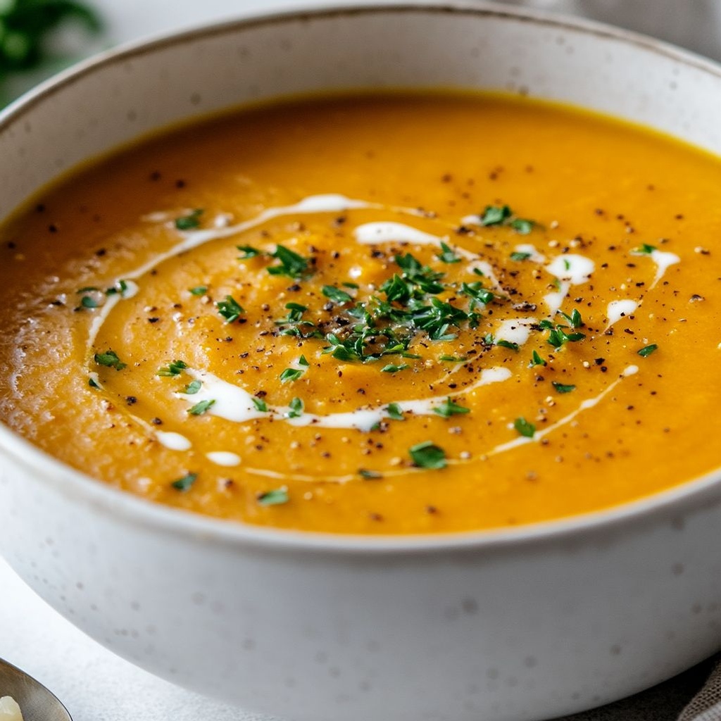 As you dip your spoon in, you’ll notice how the colors—sunlit orange with ribbons of pale, creamy swirls—mirror the mood of the season: brisk mornings, warm kitchens, and the simple joy of gathering around a bowl that feels both indulgent and approachable. This soup is all about textures as well as taste: a smooth, almost silken base with a subtle body that holds its own against a generous drizzle or a handful of toppings. It’s forgiving, friendly, and flexible—the kind of recipe that invites you to make it your own while keeping the heart of the dish intact.
