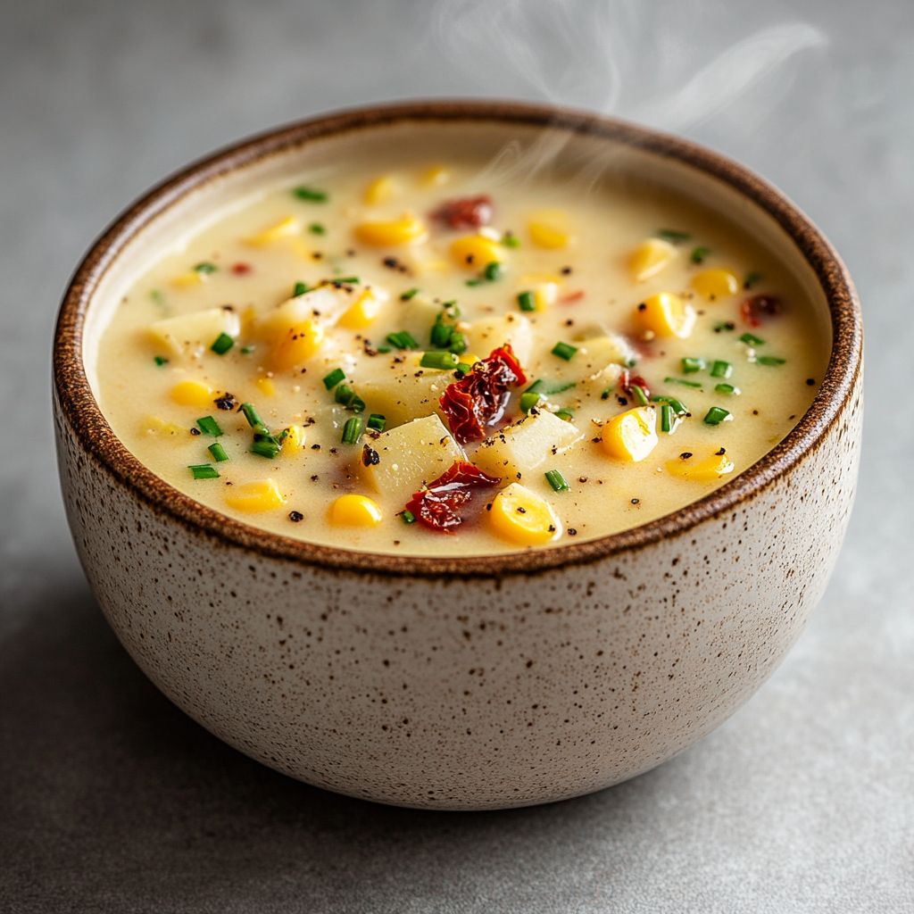 Personally, this dish has a little story of its own. I recall a late-summer farmers’ market, baskets of corn stacked high, the air sweet with ripeness and the scent of herbs. A friend handed me a jar of sun-dried tomatoes picked on a hillside, and we chatted about comfort foods that could be shared around a table at the first chill of autumn. When I brought those two ingredients together in a pot, the kitchen seemed to glow with color and scent—the corny sweetness and the tomatoes’ rosy tang weaving a memory you could taste. Since then, this chowder has become a dish I reach for when I want both heartiness and a touch of brightness, a reminder that the simplest pantry items can come together to create something both evocative and deeply satisfying.