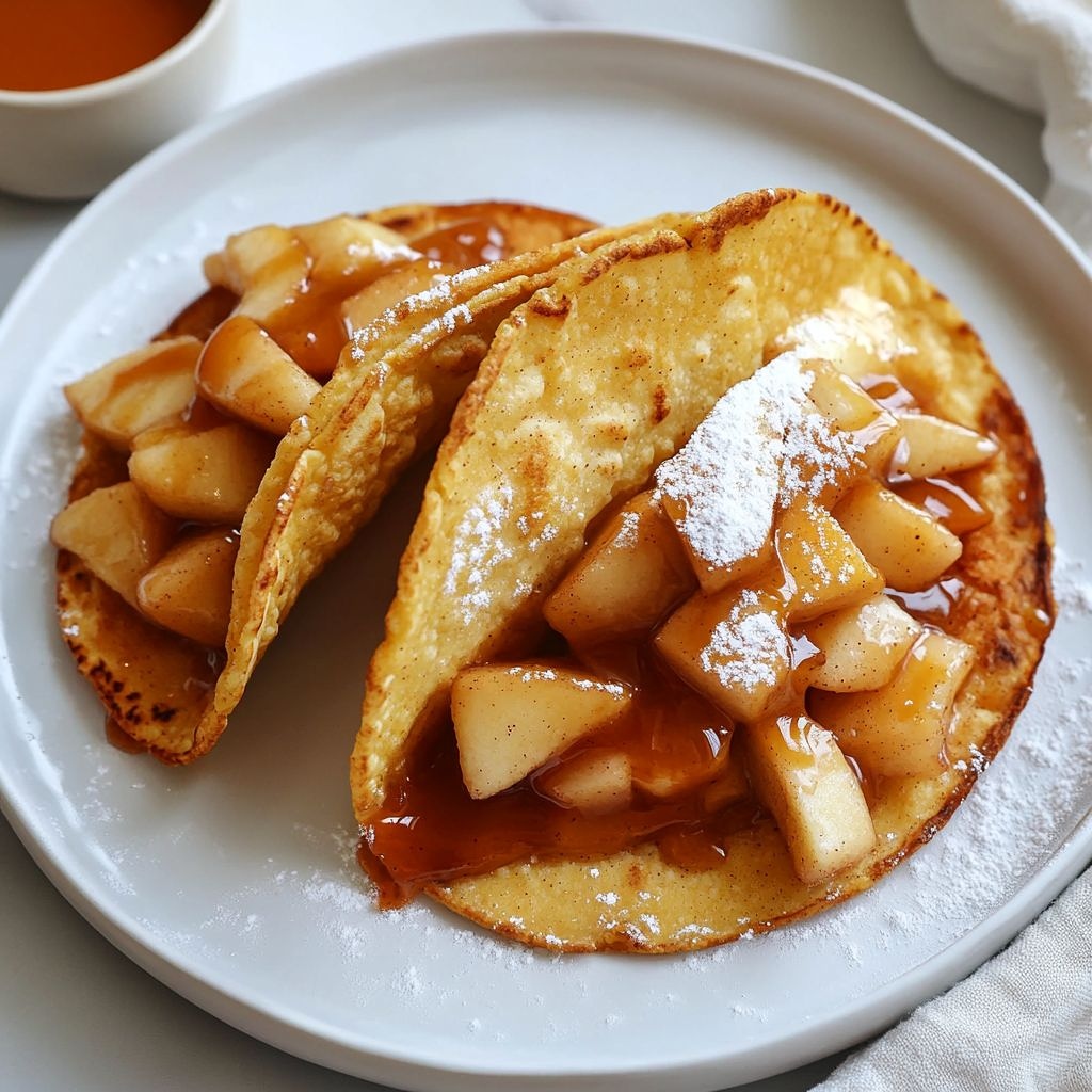 → The caramel enhances sweetness and depth, creating a luxurious balance with the tart apples and crisp shells. - Serve immediately with optional whipped cream or vanilla ice cream (dairy or dairy-free) on the side to provide a creamy contrast to the hot, crisp tacos.