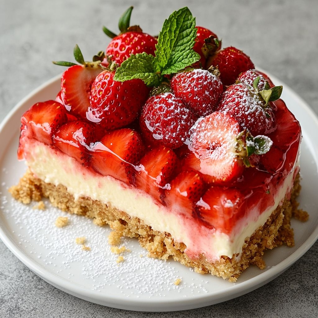 → Layering creates pockets of strawberry flavor and a visually appealing contrast while maintaining a stable structure for slicing. - Spread the remaining fresh strawberry slices over the top of the first filling layer or fold some into the remaining batter for pockets of fruit; gently swirl with a knife to create ribbons if desired for a marbled appearance.